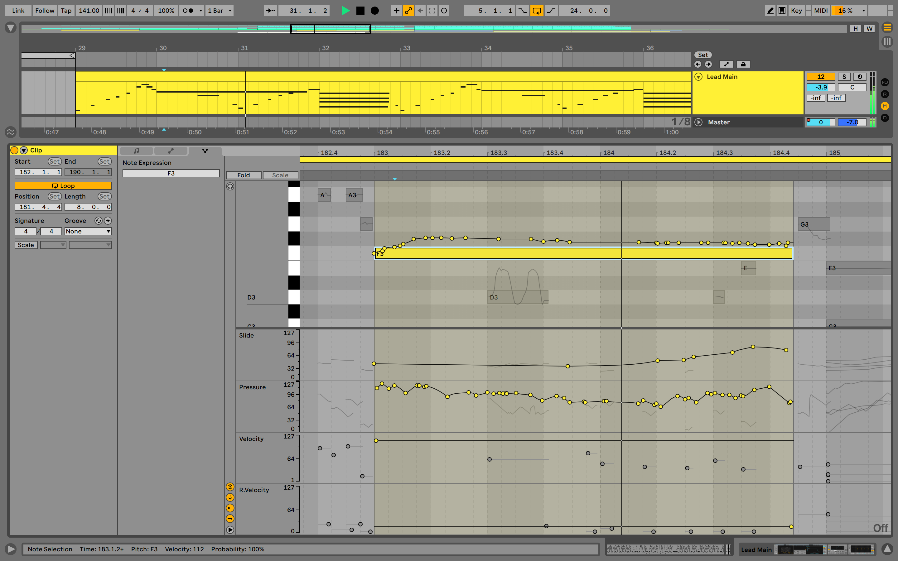 Compatibilidad con MPE que permite agregar curvas, slides y presión para cada nota individual en un acorde, además es posible agregar variaciones sutiles de expresión, cambiar entre acordes y crear texturas sónicas en evolución más fácilmente. Expression view te facilita editar las envolventes de tono, slide y presión de cada nota para refinar la expresión de tu música.