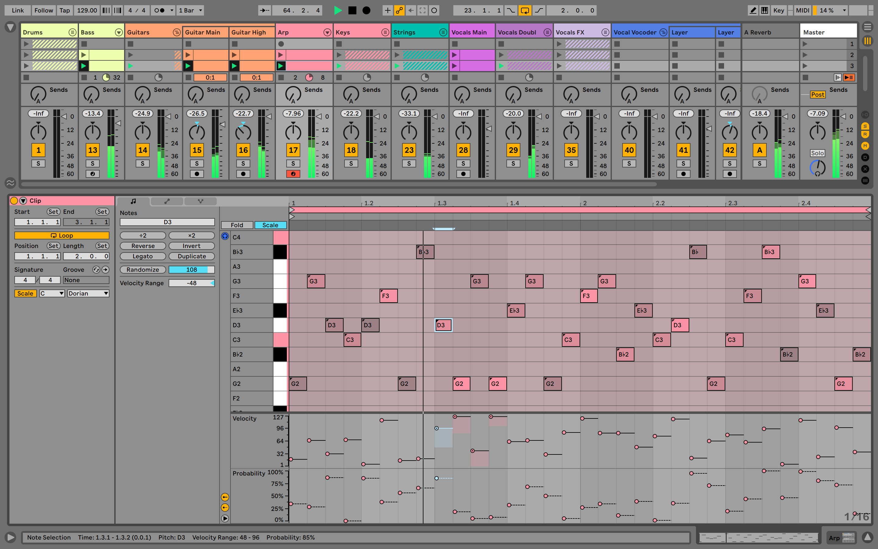 Comping en Live organiza múltiples pases de una interpretación de audio o MIDI en tomas individuales, las mejores partes de estas tomas se pueden unir para obtener el resultado final. Así mismo es posible editar las pistas vinculadas para vincular dos o más pistas y así editar su contenido simultáneamente.