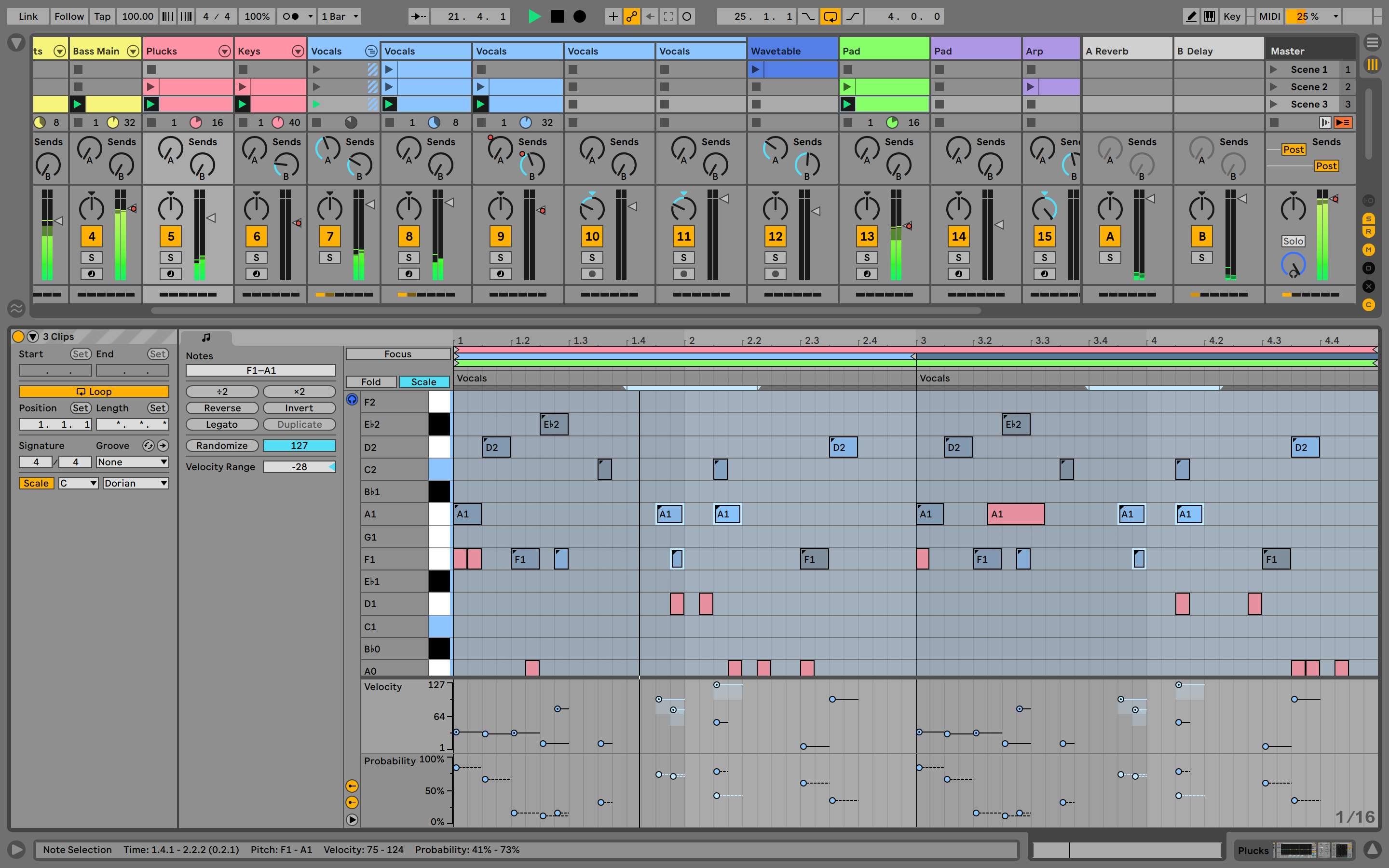 - Sincronización de la armonía y la escala: la nueva función de key y escala en Live 11 está vinculada a Push y se puede cambiar por clip.