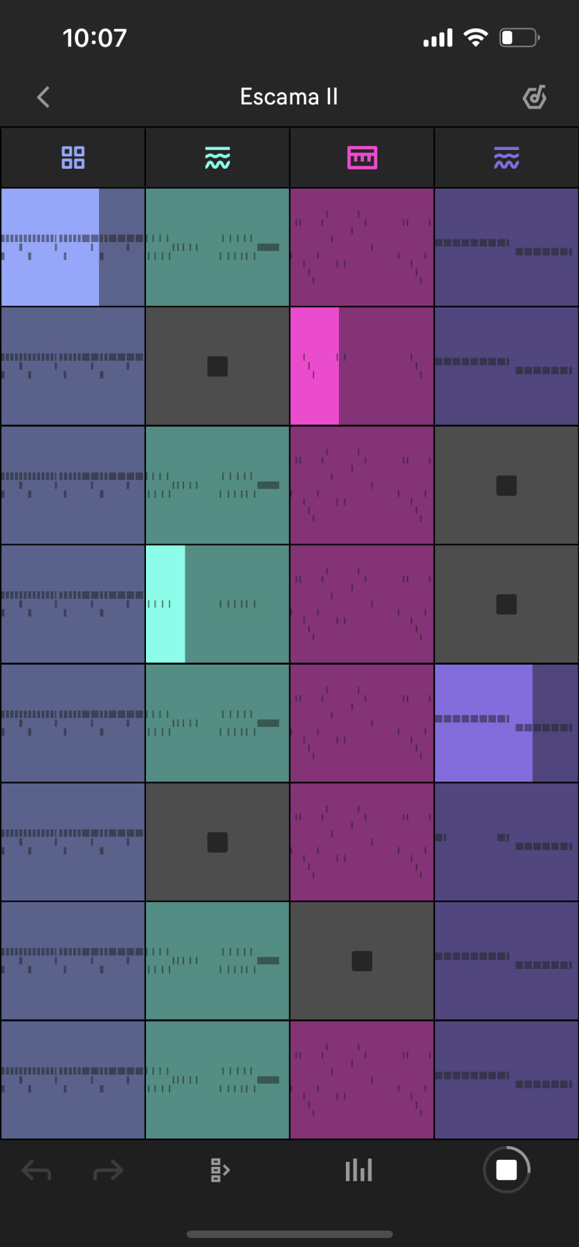 • Crea variaciones: Note presenta un diseño de vista de sesión basado en cuadrículas donde los usuarios pueden experimentar con diferentes combinaciones de capas y estructuras de canciones. Los loops se pueden duplicar para crear variaciones dentro de los clips, y a su vez dichos clips se pueden duplicar de nuevo para crear diferentes versiones de ideas. Luego, la vista de sesión se puede exportar como un archivo de audio para escuchar y compartir con amigos o con colaboradores.