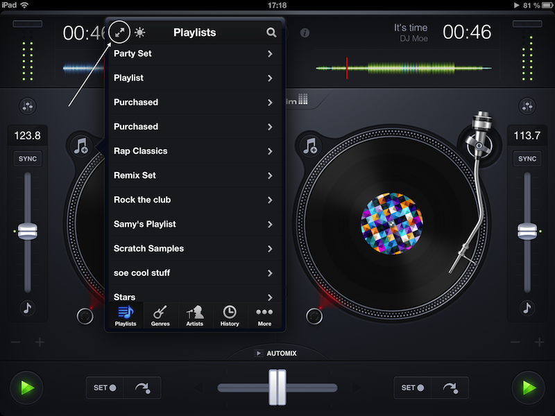 Djay transforma tu iPad en un sistema de DJ con todas las funciones necesarias para pinchar, está perfectamente integrado con tu biblioteca de música, djay te da acceso directo a todas tus canciones favoritas así como a las listas de reproducción de tu iPad. Puedes realizar mezclas sobre la marcha o activar el modo automix para que djay cree una perfecta combinación de canciones de forma automática. Si eres un DJ profesional o un principiante que le encanta jugar con la música, djay te ofrece la más intuitiva y potente experiencia de DJ en un iPad.