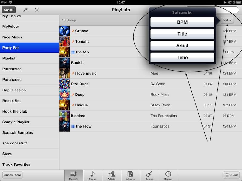 - Clasificación avanzada: Navega fácilmente por la música a través de parámetros como BPM, título, artista o tiempo