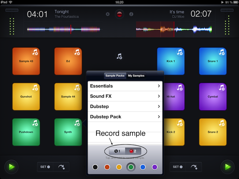- Live sampling: Crea samplers personalizados grabados en directo desde los dos decks