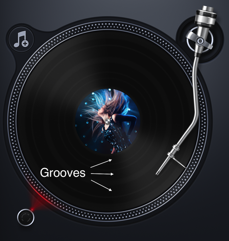 - Turntable view: Vista hiperealista con dos platos y un mezclador. Una configuración de DJ intuitiva y perfecta para mezclar o hacer scratch
