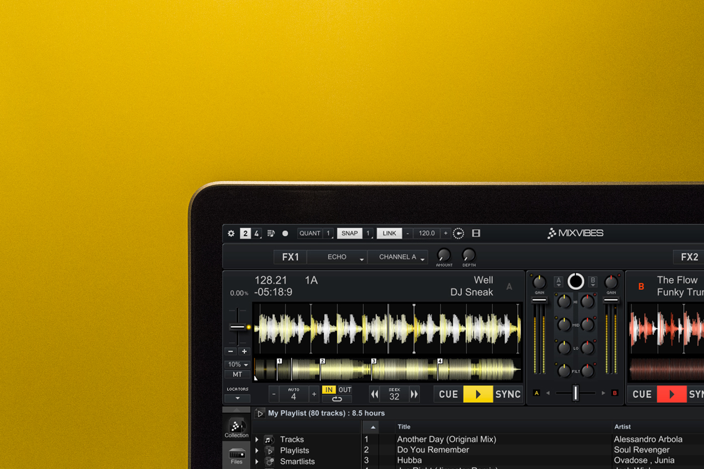 Todo lo que necesitas es una conexión WiFi y 2 ordenadores o 2 dispositivos con Remixlive o Cross DJ. Todas las aplicaciones conectadas se reproducirán automáticamente sincronizadas en todos los dispositivos.