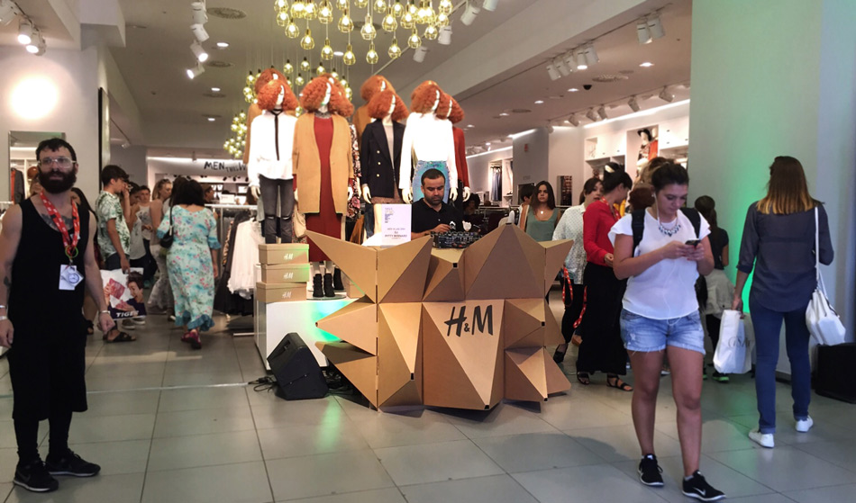 Al parecer la idea la propuso una agencia de comunicación y ellos realizaron el diseño y la producción de 3 mesas de DJ para los eventos organizados por dicha agencia en tres tiendas de H&M en Madrid.