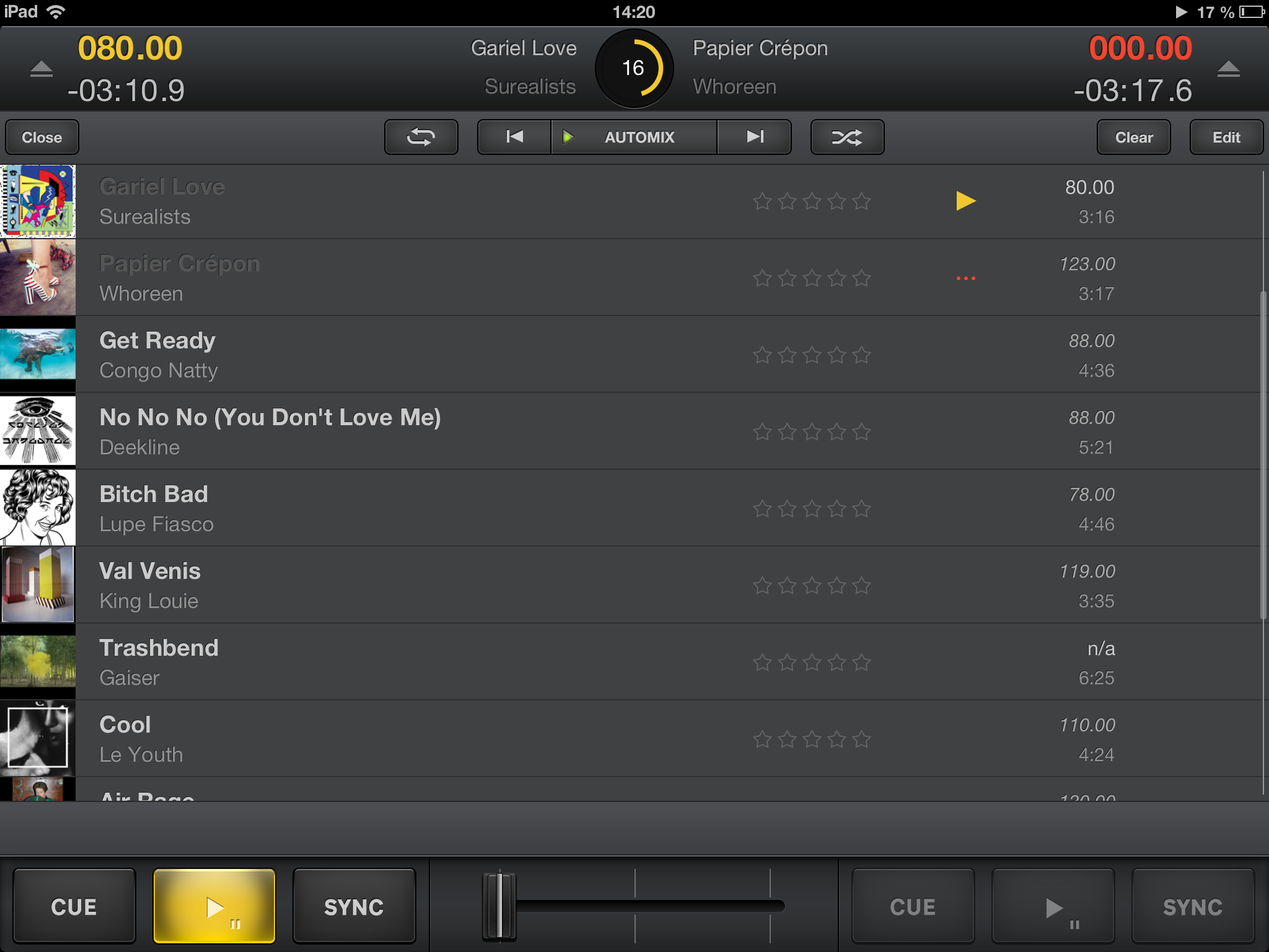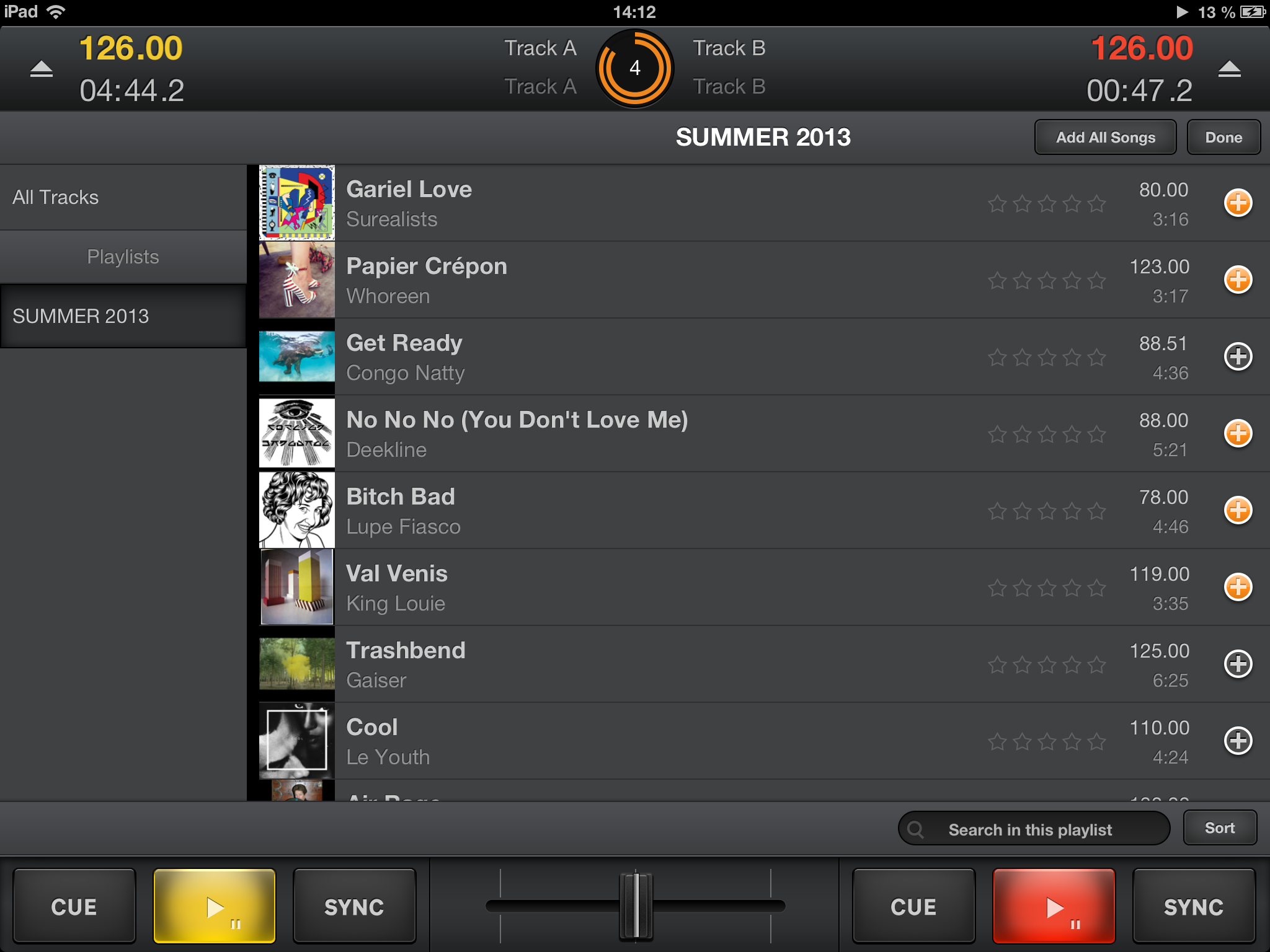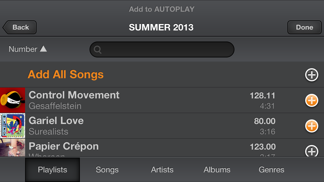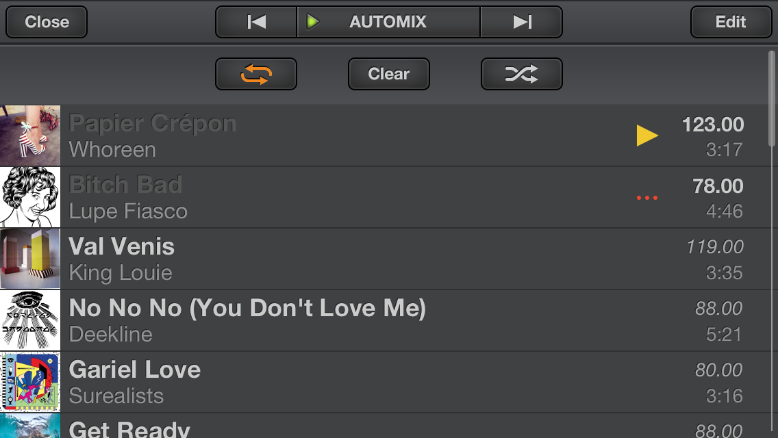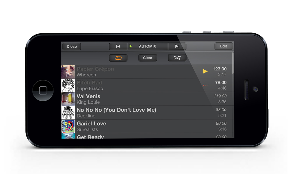 Sólo tienes que añadir pistas o listas de reproducción a la cola de reproducción automática. Ten en cuenta que las transiciones son suaves y totalmente personalizables. Selecciona el tiempo de transición y activa la sincronización automática. Edita el orden de las pistas, elimina algunas o mezcla directamente toda la cola de reproducción. Lo mejor de todo, es que si utilizas otras aplicaciones, podrás disponer de los controles nativos de iOS para saltar pistas o detener la reproducción.