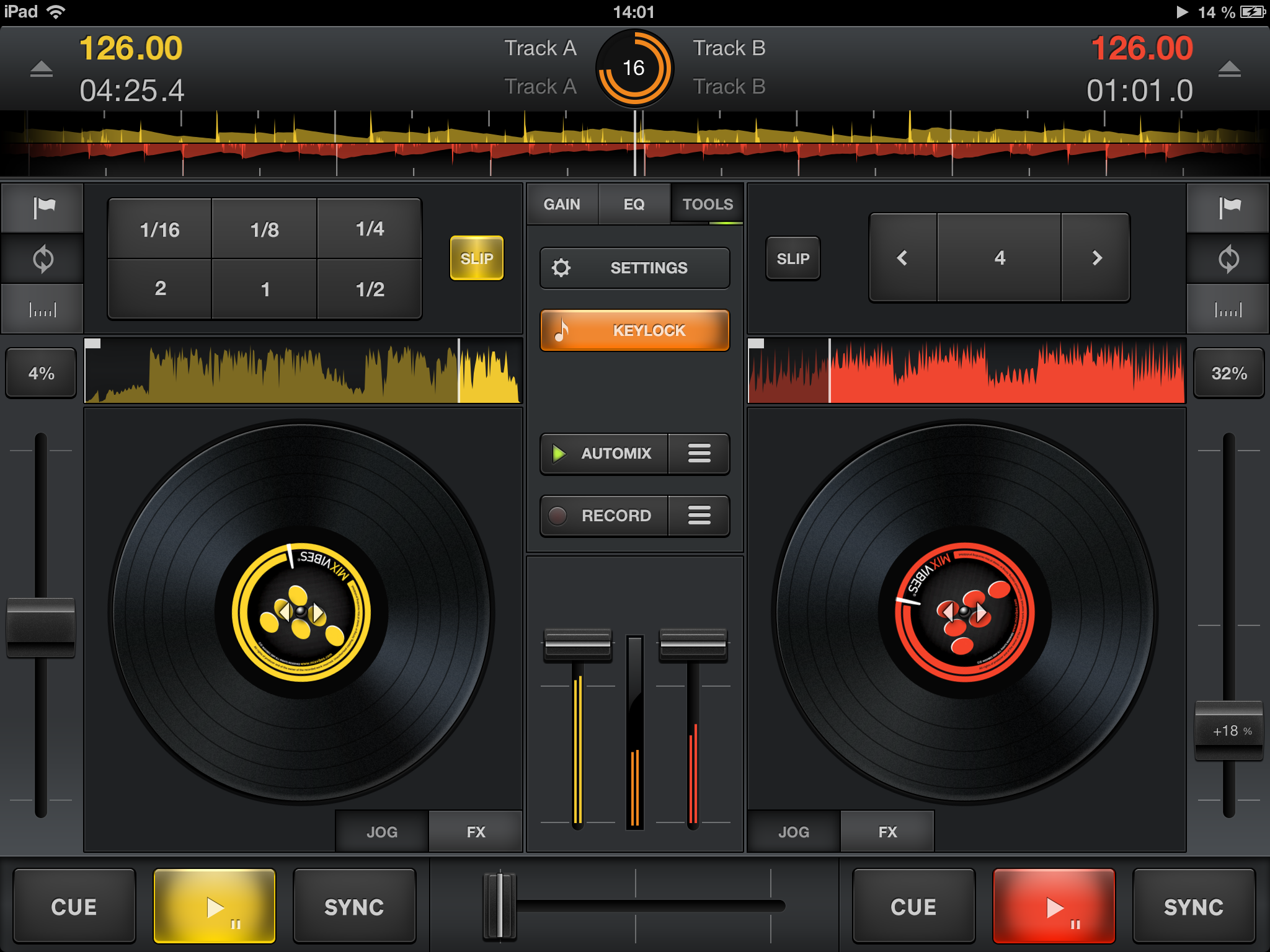Ah, y con esta actualización también tendrás disponible la función auto-gain (auto-ganancia). Esto es básicamente, poner todas las pistas al mismo volumen de forma automática, lo cual es genial cuando estás mezclando canciones viejas con nuevas. Además, te ayuda a centrarte única y exclusivamente en la ecualización, haciendo de la aplicación un software aún más fácil de usar en una pantalla diminuta como la del iPhone.