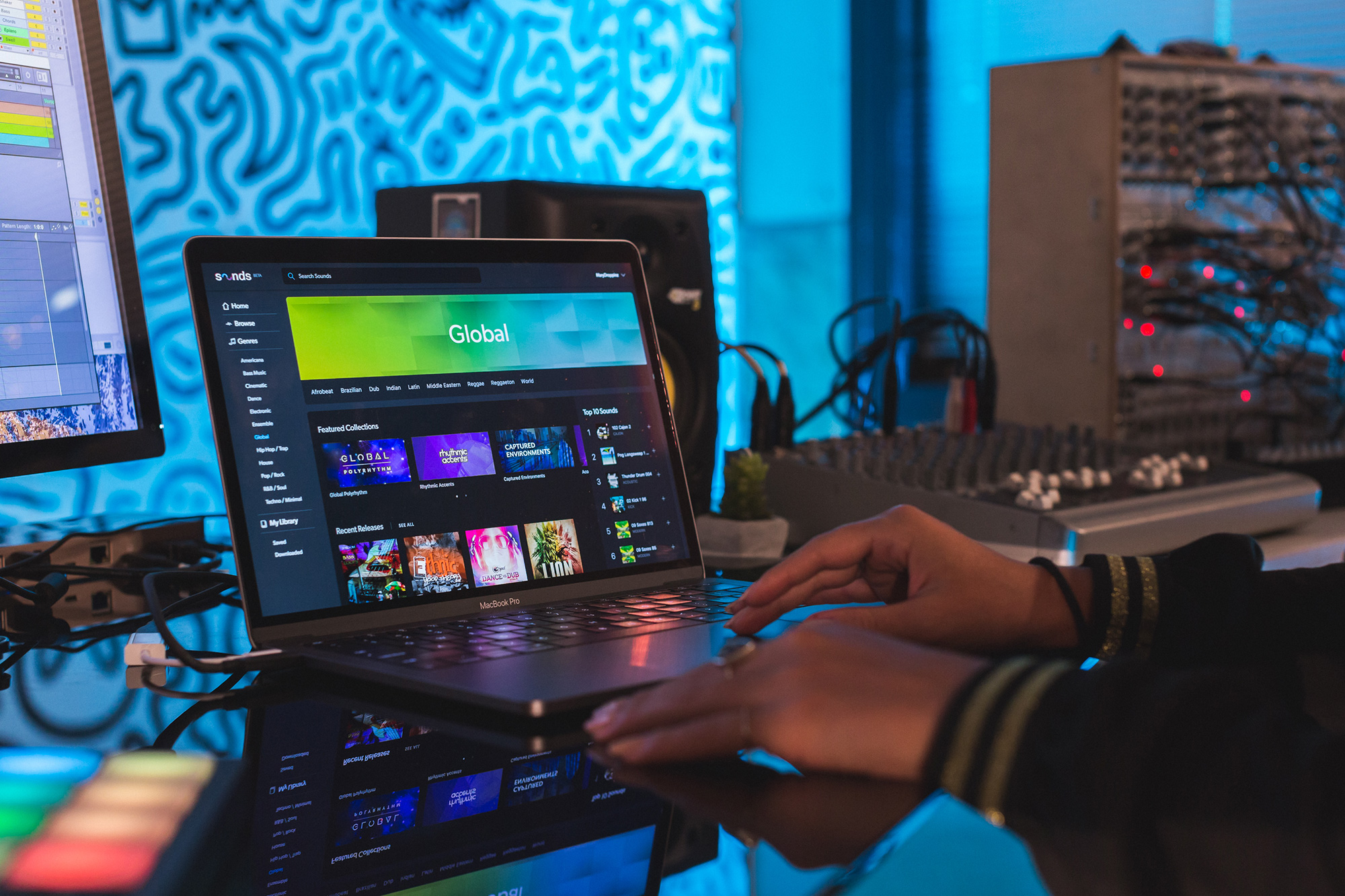 La plataforma ya alberga más de 500.000 sonidos, desde arreglos orquestales hasta pop, rock o trap, y se publican nuevos sonidos diariamente. Las sonidos actuales incluyen loops y contenido de las Maschine Expansions de Native Instruments, además de contenido exclusivo de más de 200 creadores, incluidos proveedores líderes como The Loop Loft, MVP Loops y Symphonic Distribution. Las colecciones curadas del equipo de Sounds.com brindan inspiración para los productores de todos los niveles y géneros.