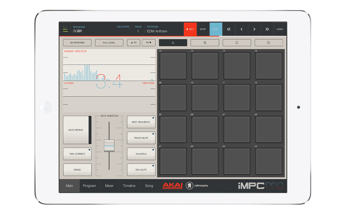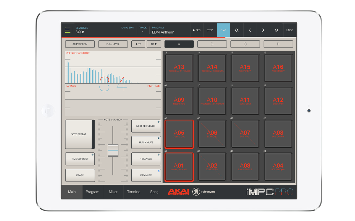 Desarrollado conjuntamente con Retronyms, empresa con el que ya se han asociado en el pasado para crear aplicaciones como Akai iMPC para iOS, iMPC Pro fusiona el flujo de trabajo del aclamado hardware MPC (Music Production Center) con herramientas de vanguardia para componer, editar y mezclar música. La aplicación Akai iMPC Pro incluye más de 30 funciones nuevas para potenciar el proceso creativo desde la conceptualización hasta el toque final de la producción.