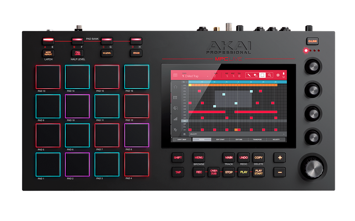 Akai MPC Live es el último miembro llegado a la mítica familia MPC de Akai. El pequeño de la casa viene con una pantalla táctil a todo color de 7 pulgadas, 16 pads RGB sensibles a la presión, cuatro controles Q-Link sensibles al tacto y un gran encoder para seleccionar y cargar los sonidos deseados.