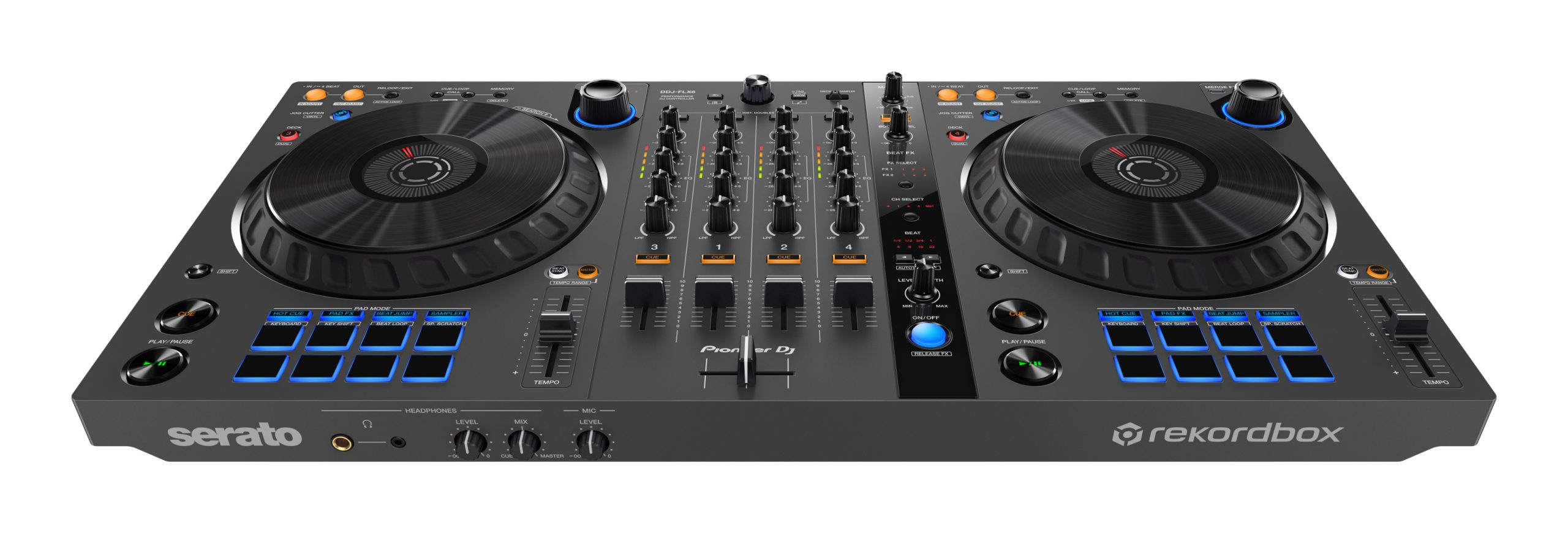 El DDJ-FLX6-GT incluye todas las características de la unidad original, incluido Merge FX, que facilita la aplicación de efectos y mezclar canciones de géneros totalmente diferentes. Puedes cambiar de Hip-hop a House, de Rock a EDM, o entre cualquier otro estilo que quieras tocar. Y, con las funciones Jog Cutter y Sample Scratch, puedes darle vida fácilmente a tus sets con efectos de scratch.
