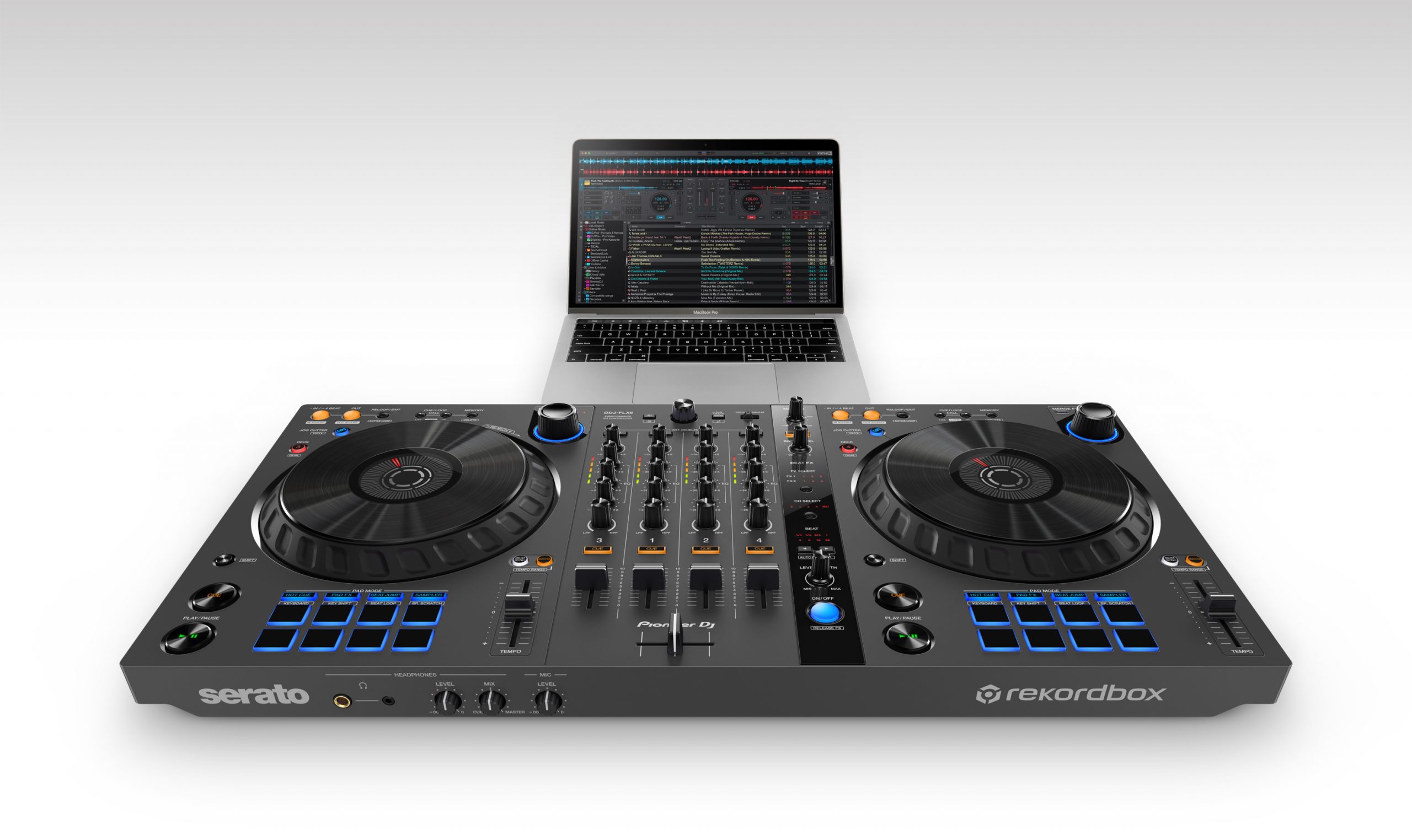 Pioneer DJ ha lanzado su nuevo controlador Pioneer DDJ-FLX6-GT, que según la marca es una versión actualizada que reemplazará al Pioneer DDJ-FLX6. El nuevo diseño de este DDJ-FLX6-GT presenta una nueva apariencia de sus jog wheels de gran tamaño, que cuentan con un color grafito además de una textura metálica en la parte superior y un revestimiento de goma en el anillo exterior para mejorar la movilidad. El resto de la unidad también cuenta con un aspecto diferente al mencionado FLX6, con un nuevo color gris mate en todo el cuerpo. Otra actualización importante del controlador DJ es su compatibilidad con una gama ampliada de software. Este modelo añade soporte para VirtualDJ (licencia disponible por separado), al tiempo que conserva la compatibilidad gratuita con Rekordbox y Serato DJ Pro. El software VirtualDJ también estará disponible para usar con el DDJ-FLX6 original actualizando la unidad a la última versión de firmware, y Traktor Pro 3 estará disponible para utilizarlo con cualquiera de los modelos descargando los archivos de mapeo necesarios (TSI).
