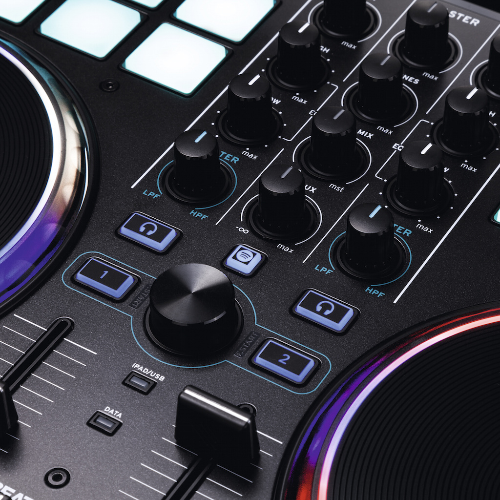 – Controlador profesional para DJ compatible con iPad, Mac/PC y dispositivos Android
