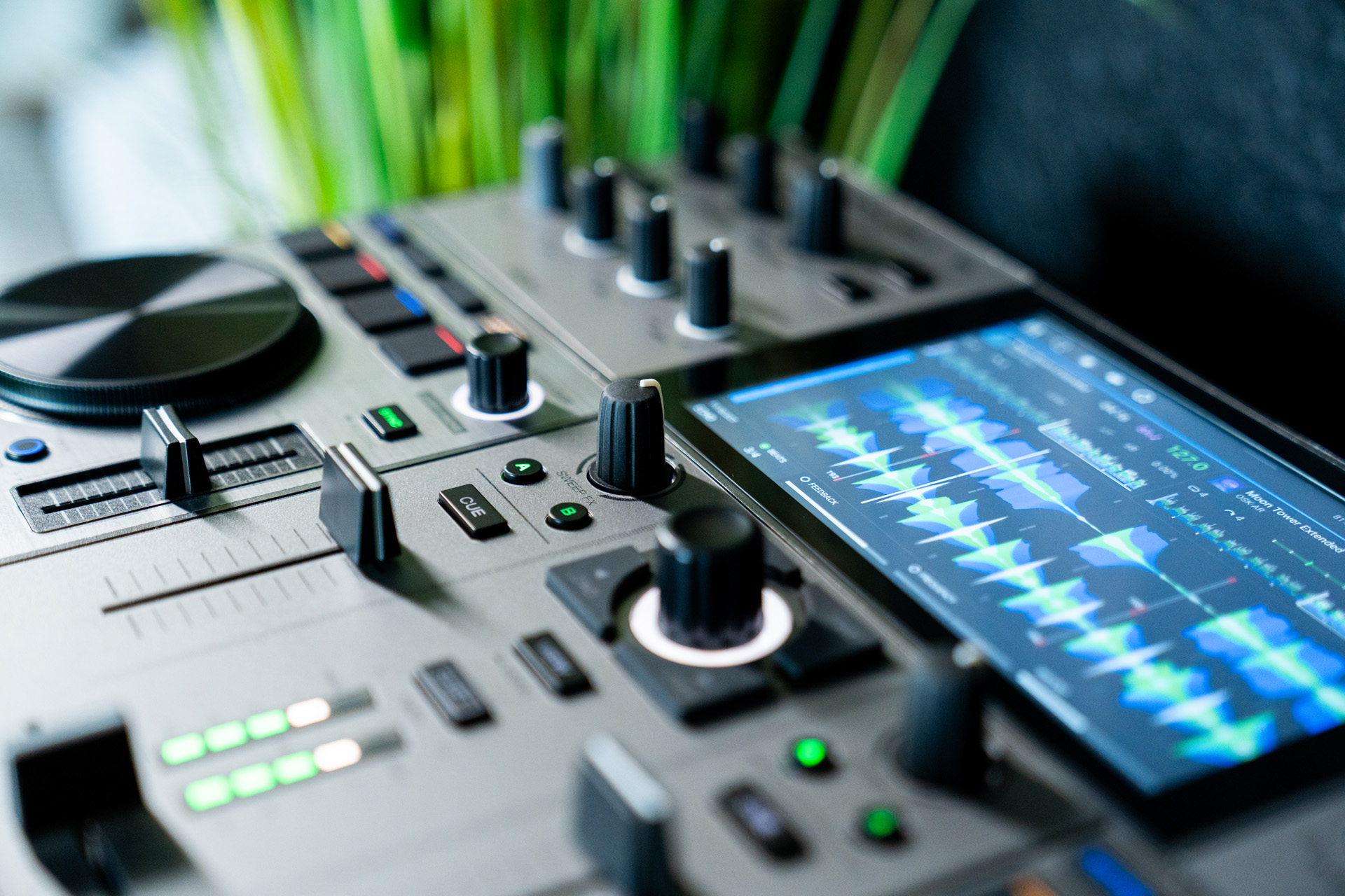 - Pantalla táctil multigestual de 7 pulgadas: Una pantalla táctil de alta definición permite a los DJ controlar intuitivamente su música, ofreciendo vistas personalizables y un modo diurno para eventos al aire libre.