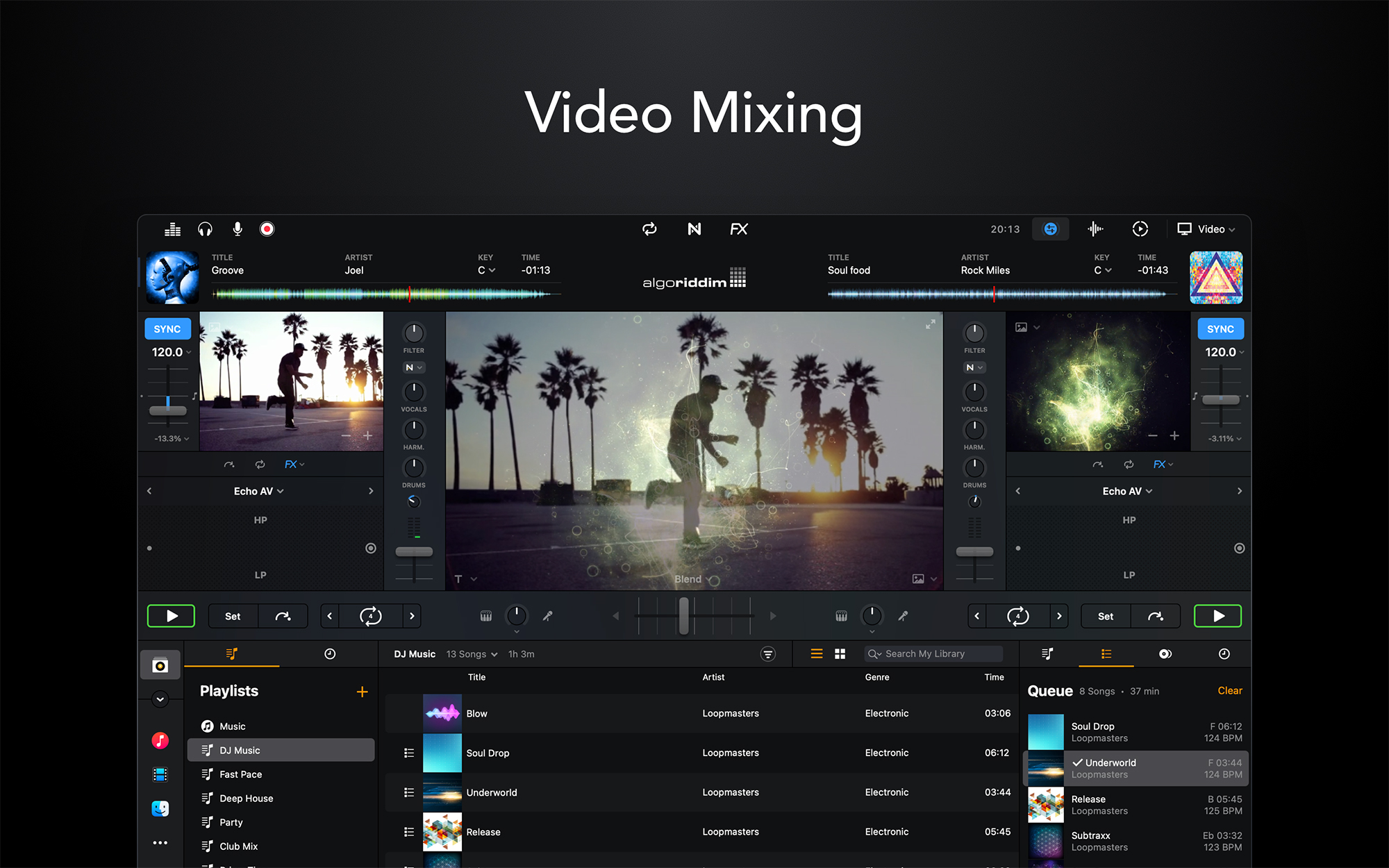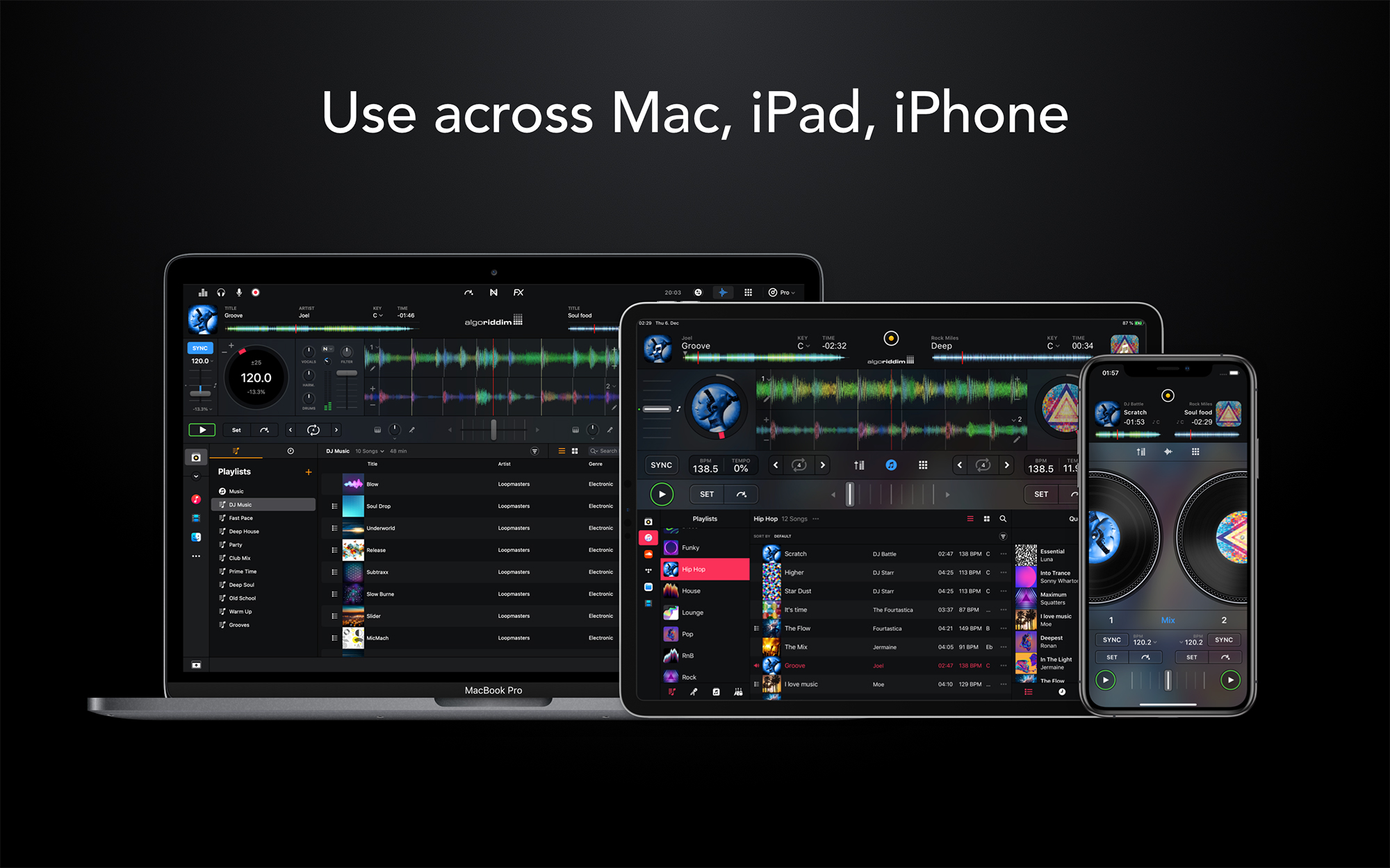 - Aplicación única que unifica a djay en dispositivos macOS e iOS