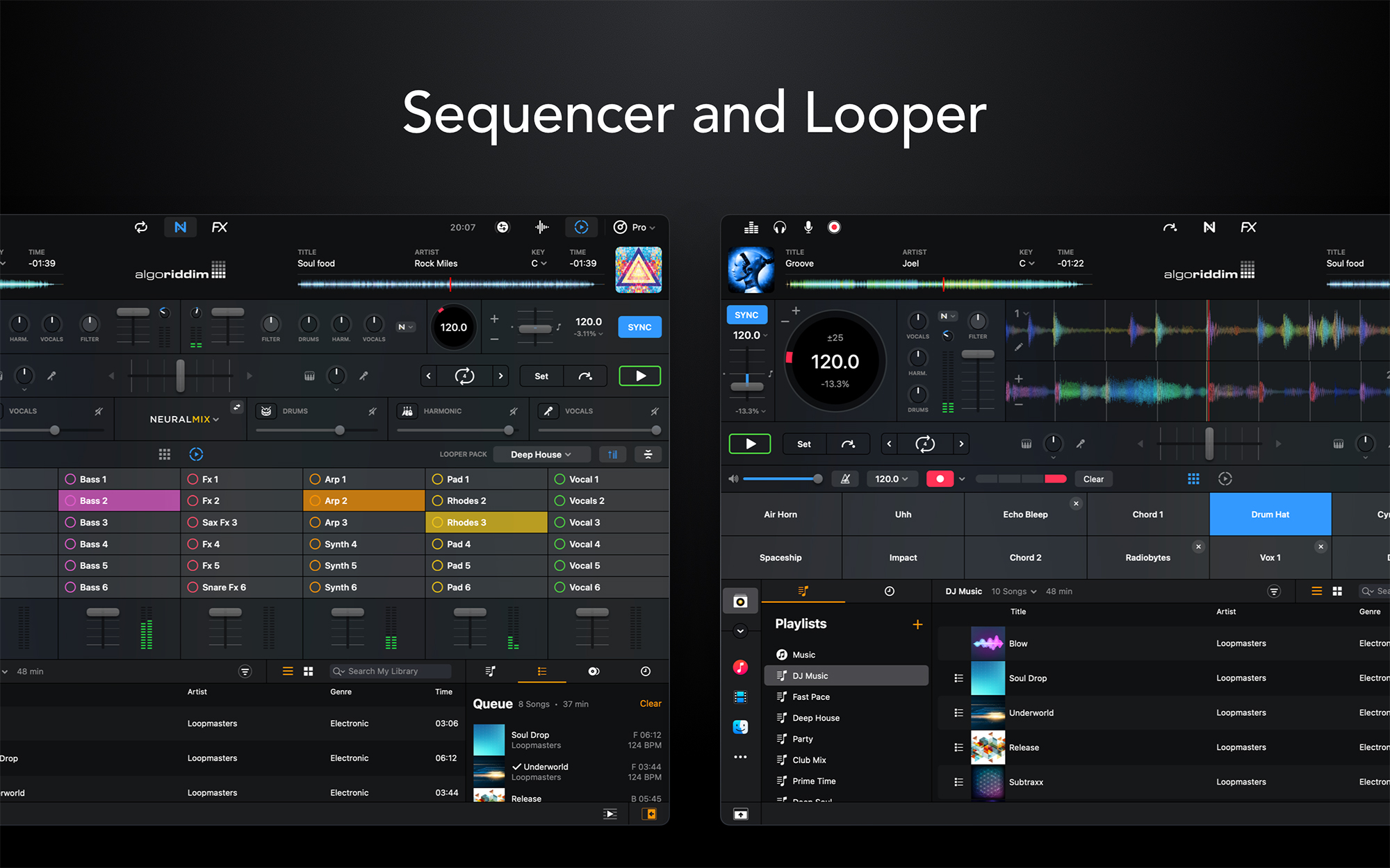 - Looping Neural Mix que permite loopear voces o melodías independientemente del ritmo de canción y viceversa