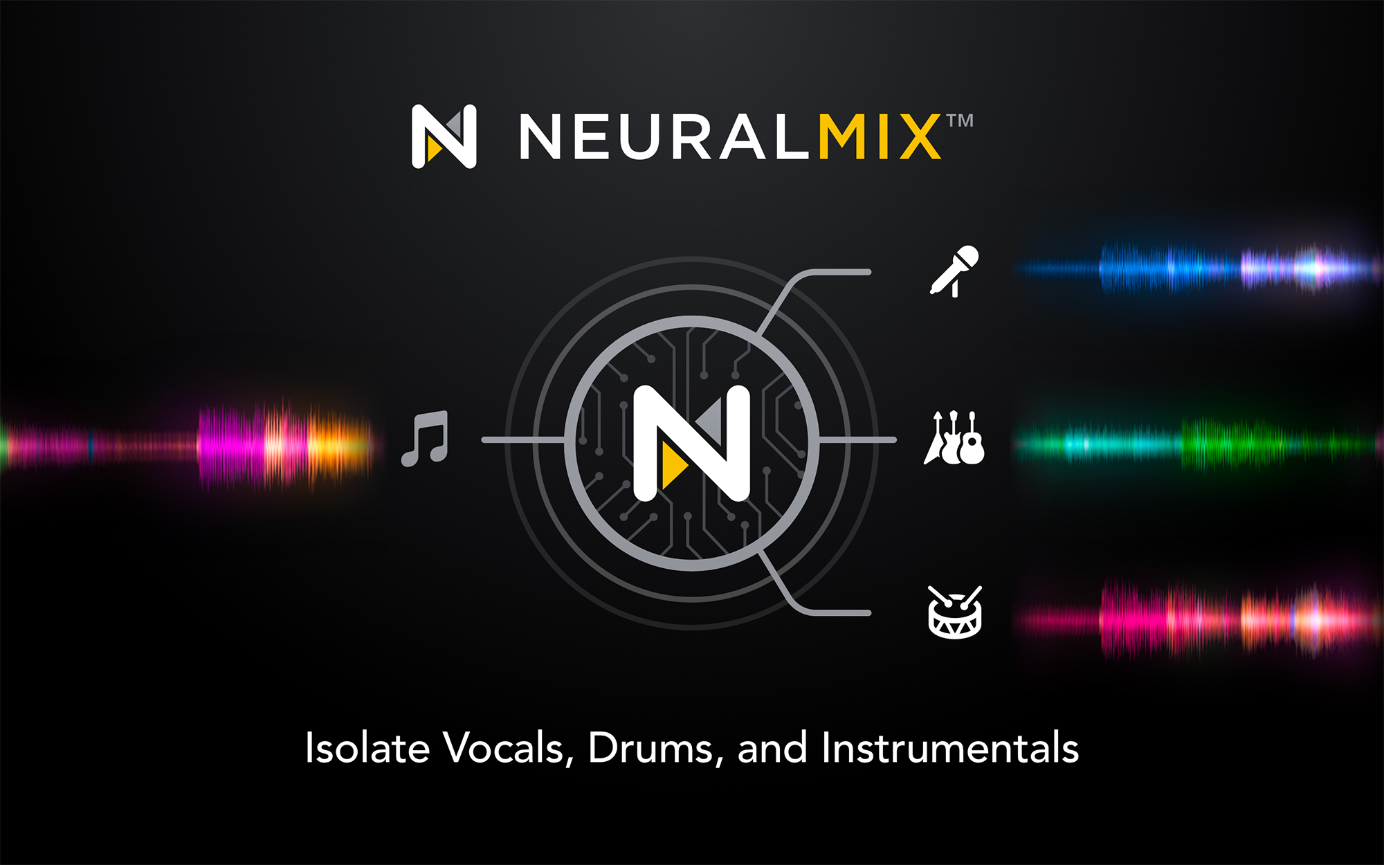 - Configuraciones de canales Neural Mix para adaptarse a diferentes géneros y estilos de mezcla, por ejemplo separación para HipHop, “Drums – Harmonic – Vocals” para Dance o “Drums – Bass – Melodic” para música electrónica