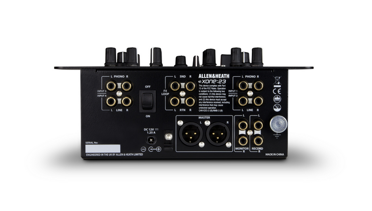 La salida principal y la entrada de micrófono son XLR balanceadas y existe una salida de grabación dedicada. La Xone:23 está equipada con una salida Booth con su propio control de volumen y una señal para el control de la mezcla de señal.