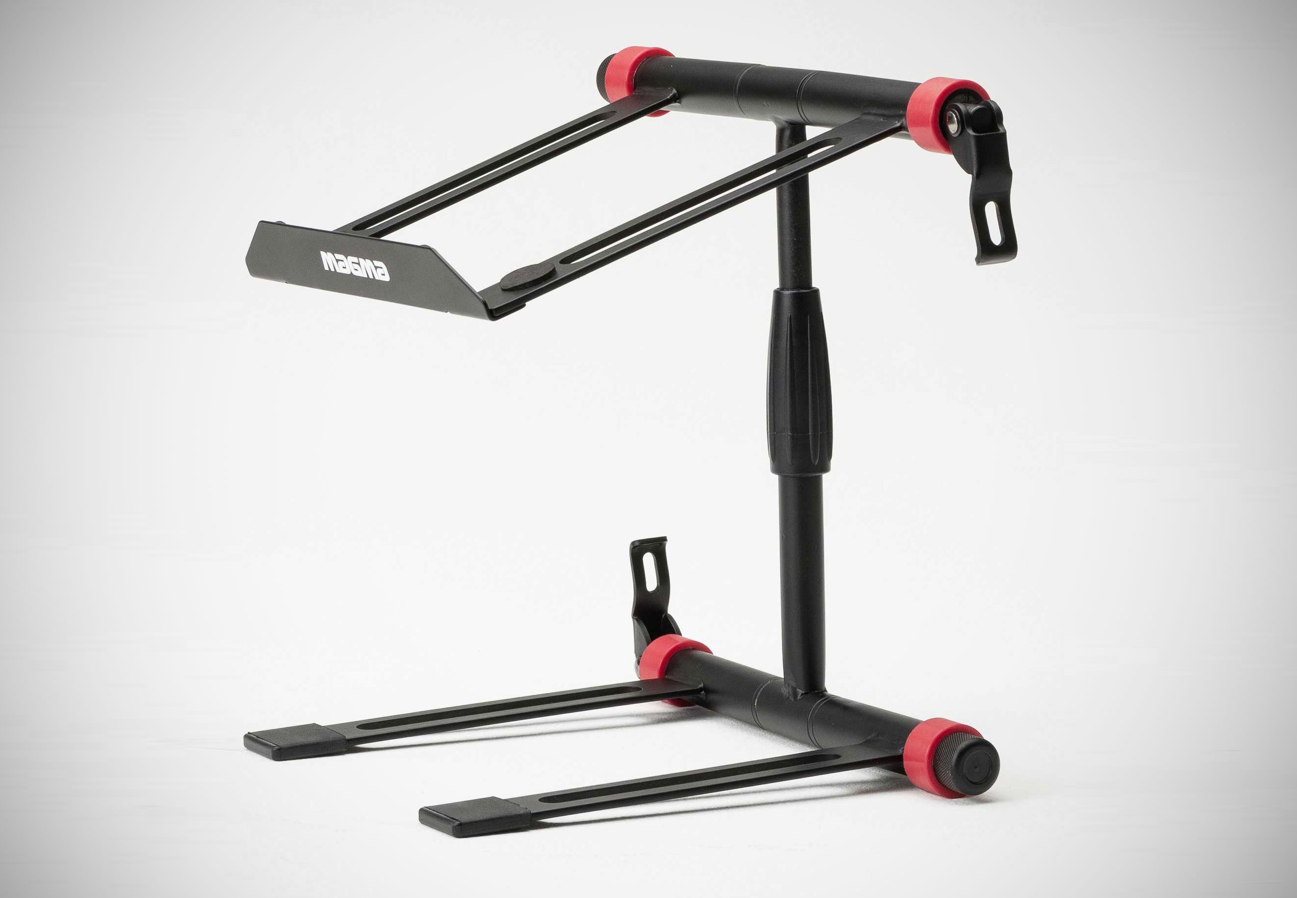 El nuevo soporte Magma Vektor es robusto y versátil y está diseñado para soportar un ordenador portátil, un controlador de DJ de pequeño tamaño o hardware de producción tipo Maschine, Push 2 o Launchpad. Es muy fácil de montar y su diseño extremadamente flexible te permite ajustar el soporte en infinitas posiciones. Su altura y su ángulo son totalmente ajustables y es posible colocarlo cómodamente debajo de un mixer, un plato o un controlador.