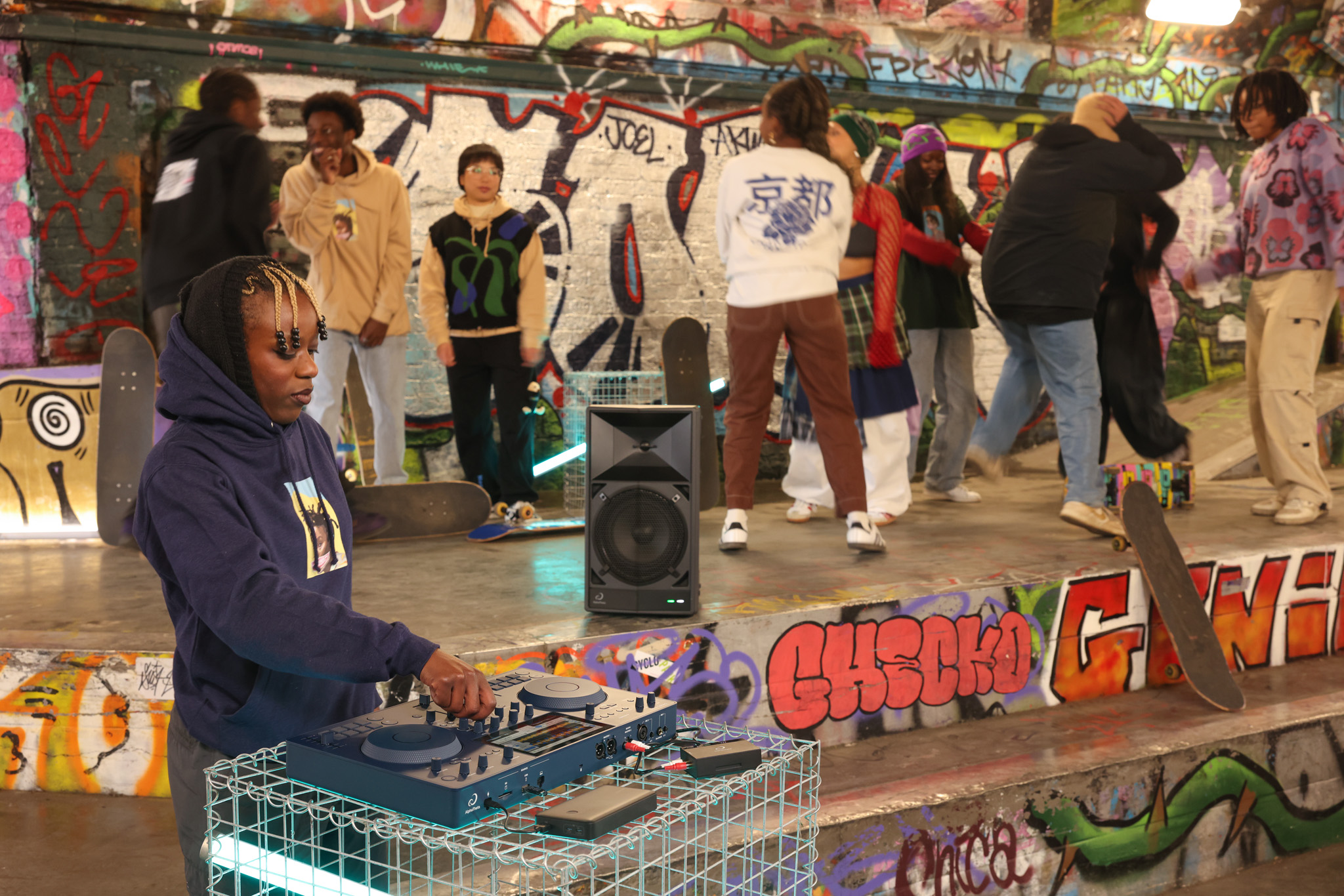 Puedes invitar al público para que conecte su teléfono al Omnis-Duo a través de la función de entrada Bluetooth y así pinchar las canciones que demanden en la sesión. Gracias a la función de reproducción Bluetooth del sistema, la primera en la industria, se tendrá control del audio en el deck. Por lo tanto, se puede ajustar el volumen y el ecualizador, aplicar efectos al sonido, cambiar el tempo, usar Hot Cues y hacer scratch, tal como lo haría con canciones preparadas previamente y reproducidas desde otras fuentes musicales.