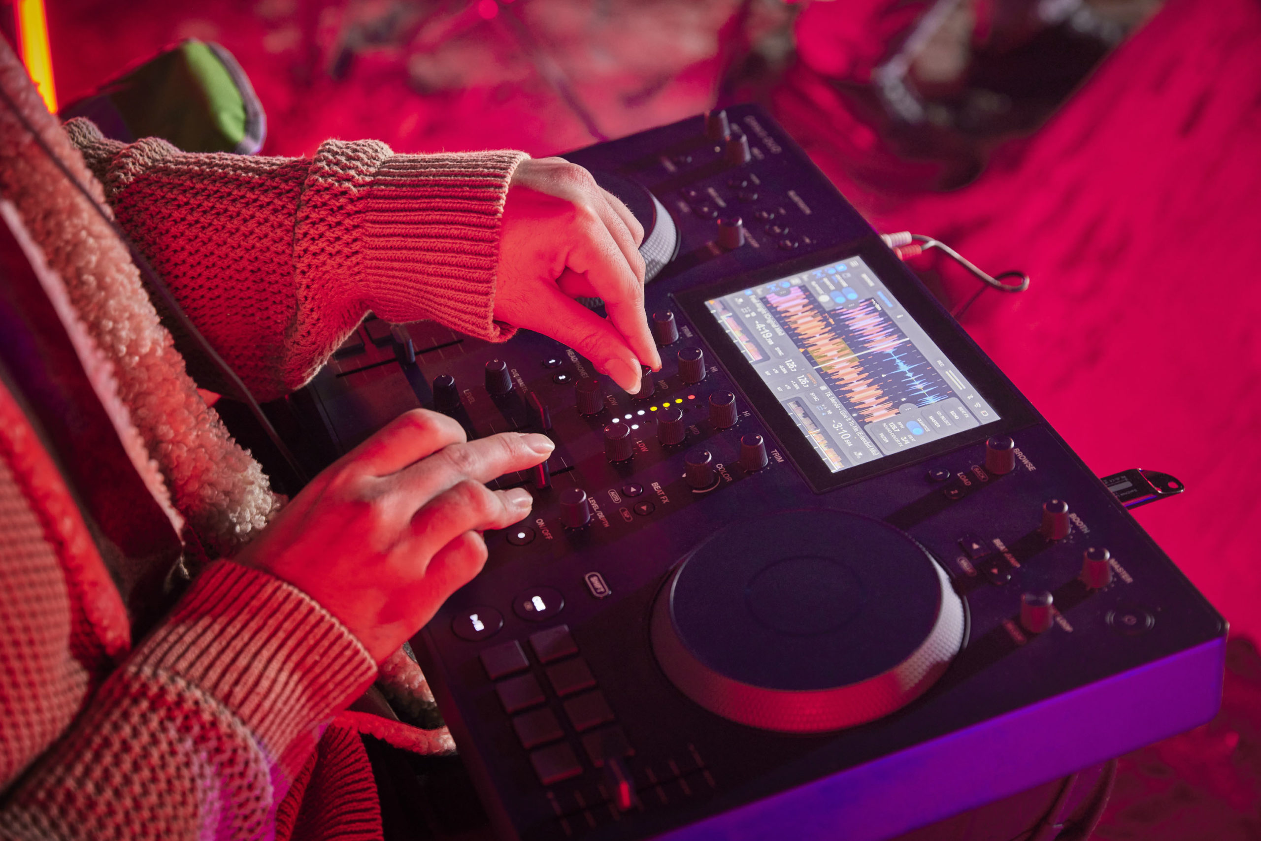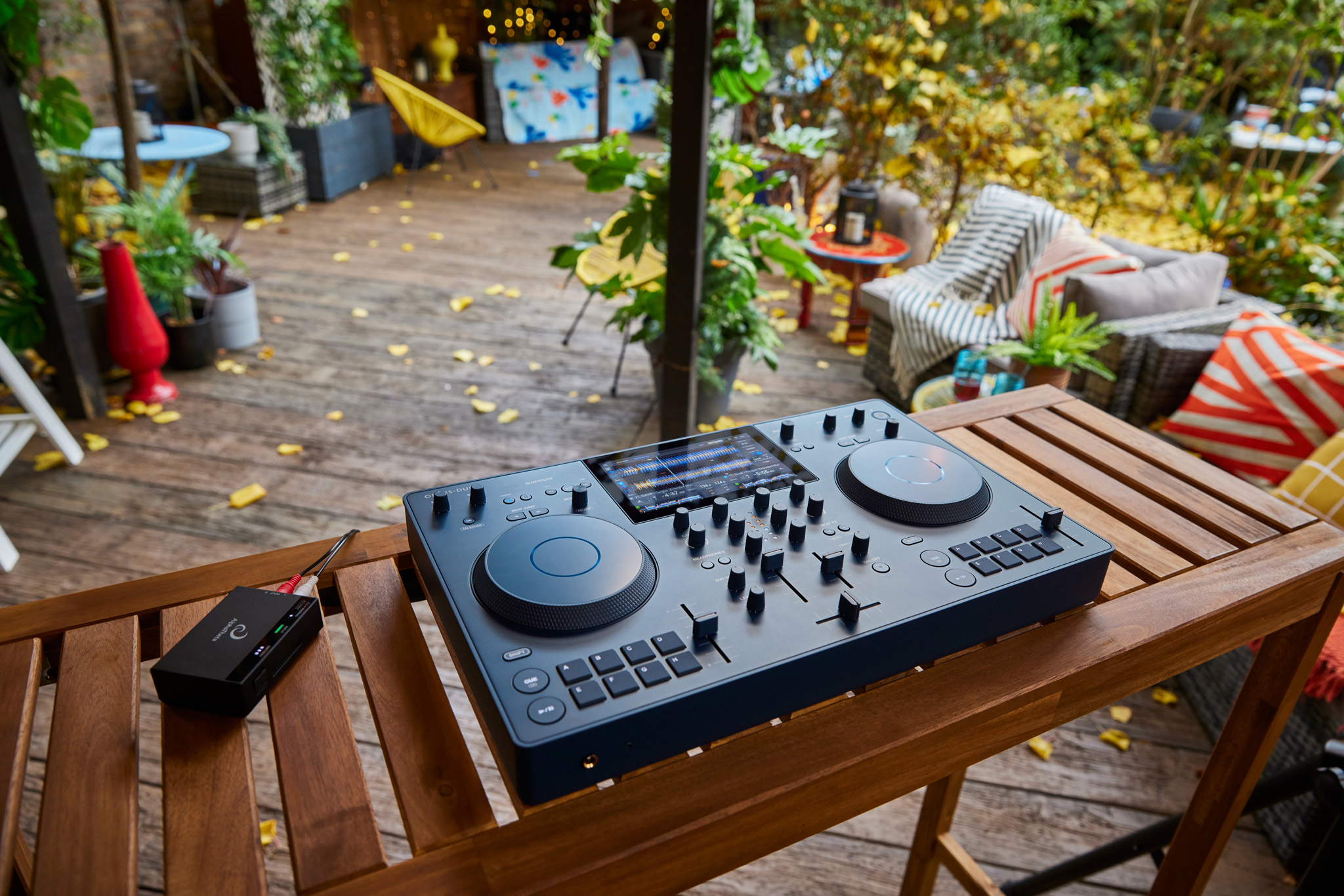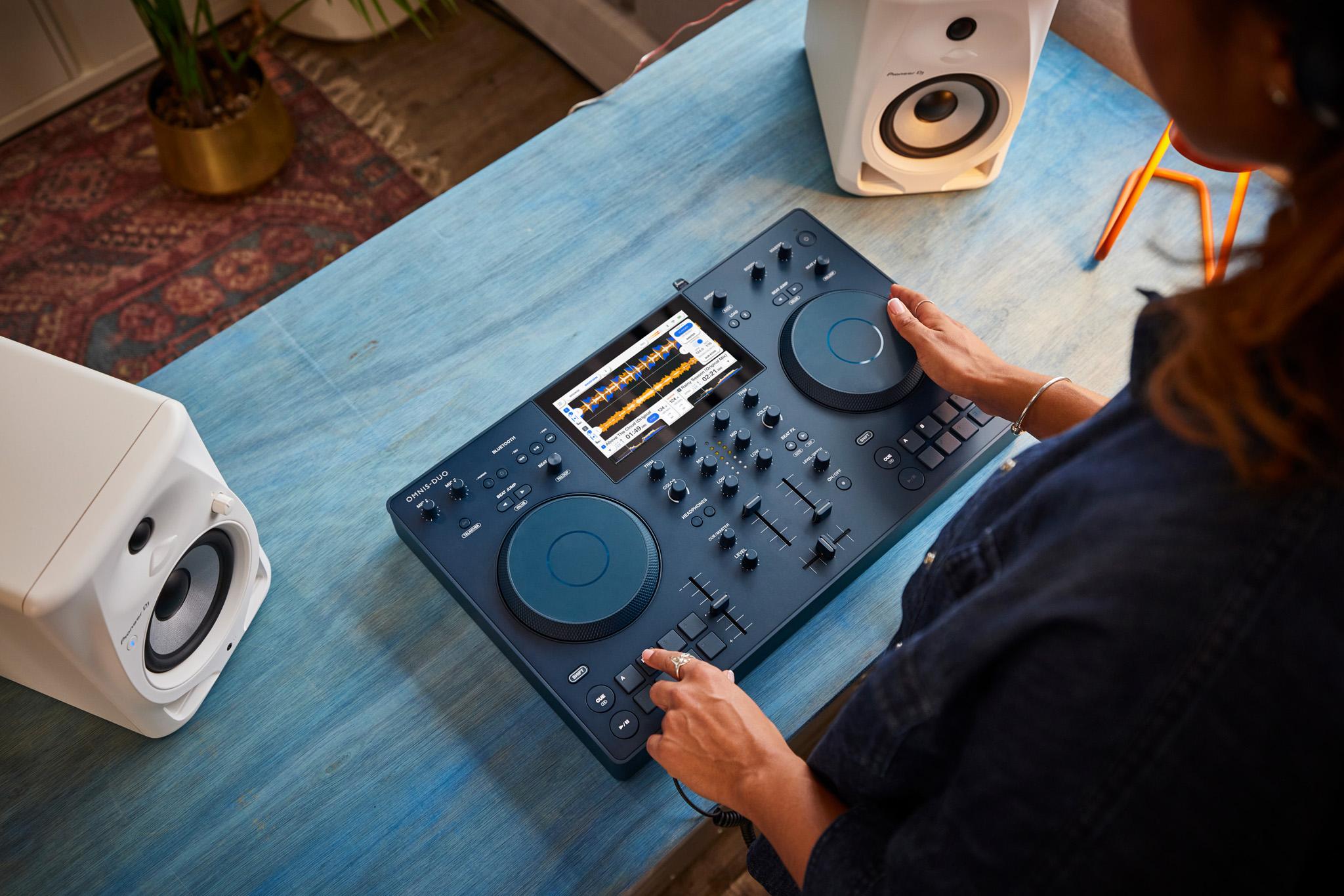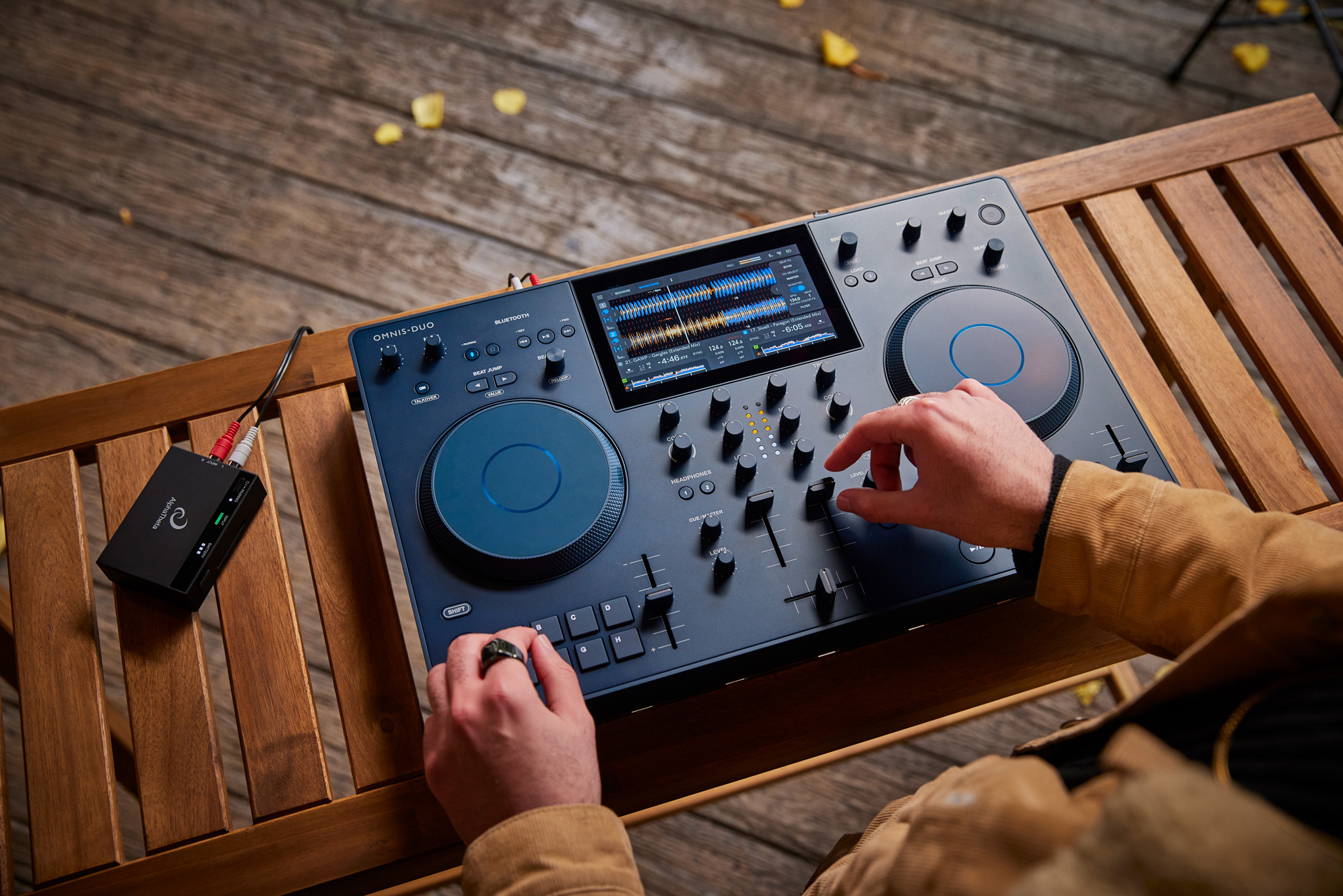 Diseñado para ser totalmente portátil, el Omnis-Duo es lo suficientemente ligero y compacto como para caber en una mochila. Es fácil configurarlo y disfrutar de una auténtica experiencia DJ en cualquier lugar, incluso al aire libre, gracias a la función de salida de audio Bluetooth®/MD, alimentación por batería, 2 decks y mixer con su pantalla táctil. No es necesario llevar ordenador portátil ni cables: tanto si lo que se quiere es ir de fiesta a la playa, a un parque o incluso en un automóvil.