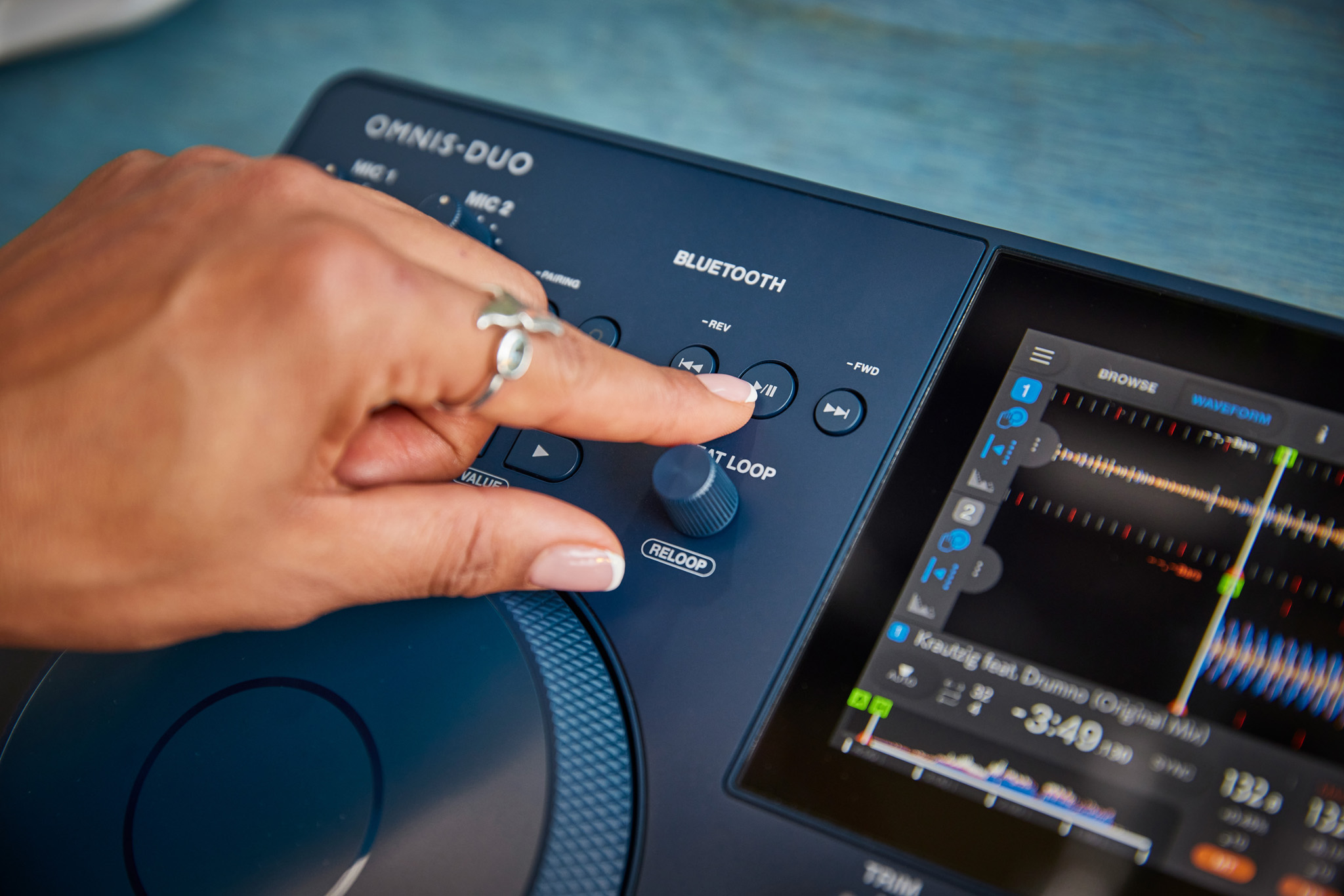 Gracias a su salida de audio Bluetooth, el Omnis-Duo abre nuevas posibilidades, ya sea que para pinchar en el cambpo, en la playa o incluso conectarte al sistema de sonido de un automóvil, no hay límite en los lugares donde se puede celebrar una fiesta. Y cuando llegue el momento de tocar en un lugar como un bar, es posible usar la salida XLR profesional, mientras que los terminales RCA son perfectos para conectar monitores en casa.