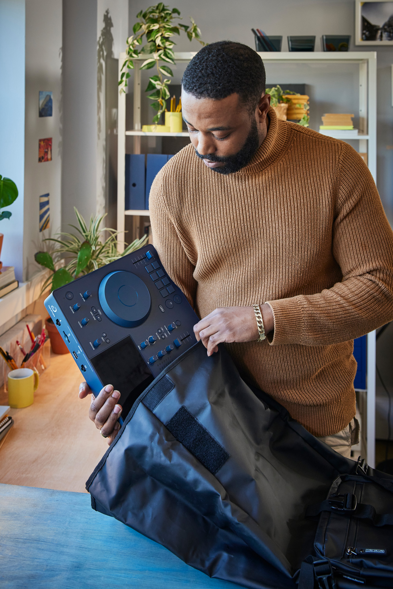 Omnis-Duo se puede llevar una mochila y trasnportarlo a cualquier lugar gracias a su tamaño compacto, el peso ligero y las esquinas redondeadas de la unidad. El diseño de 2 decks + mezclador del sistema resultará familiar para cualquier tipo de DJ. Hay 2 modos para la pantalla táctil: Claro y Oscuro, entre los cuales se puede cambiar instantáneamente para que siempre se vea la información mostrada de manera rápida y sencilla, incluso en entornos exteriores con mucha luz.