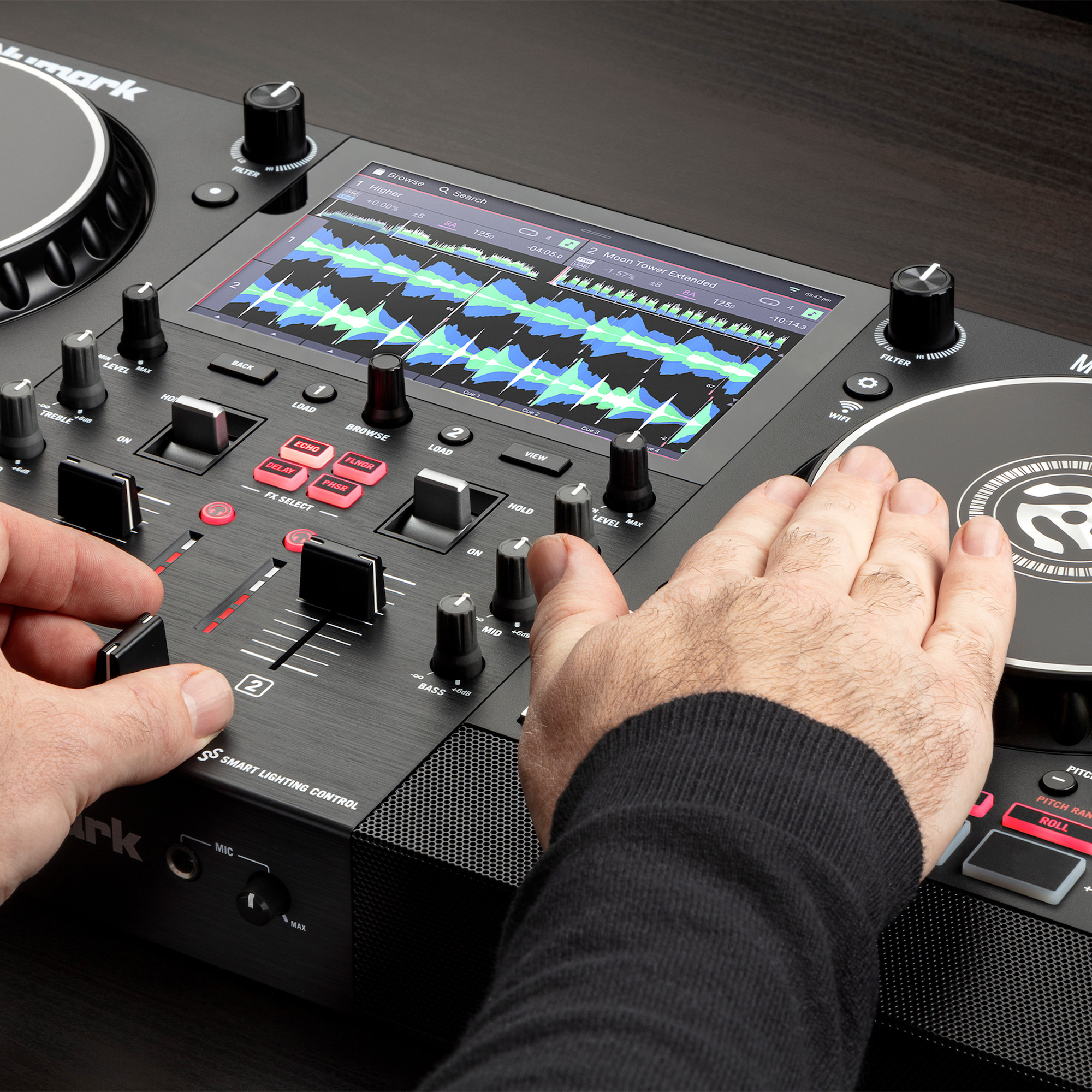 Una pantalla táctil de alta definición de 7 pulgadas, con una distribución intuitiva, facilita que el DJ pueda navegar, cargar e interactuar con su música. La creatividad del DJ también se ve respaldada por la presencia de una EQ y una sección de efectos completa. Los cuatro efectos incorporados (Eco, Flanger, Delay y pPhaser) se encuentran sincronizados al ritmo de la música y pueden ser disparados en cualquier momento con la ayuda de los conmutadores interactivos.
