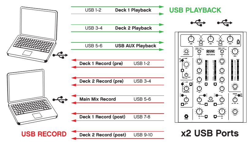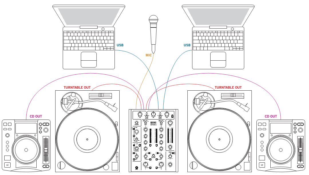 - Dos interfaces de audio con doble puerto USB para un cambio de DJs sin silencios