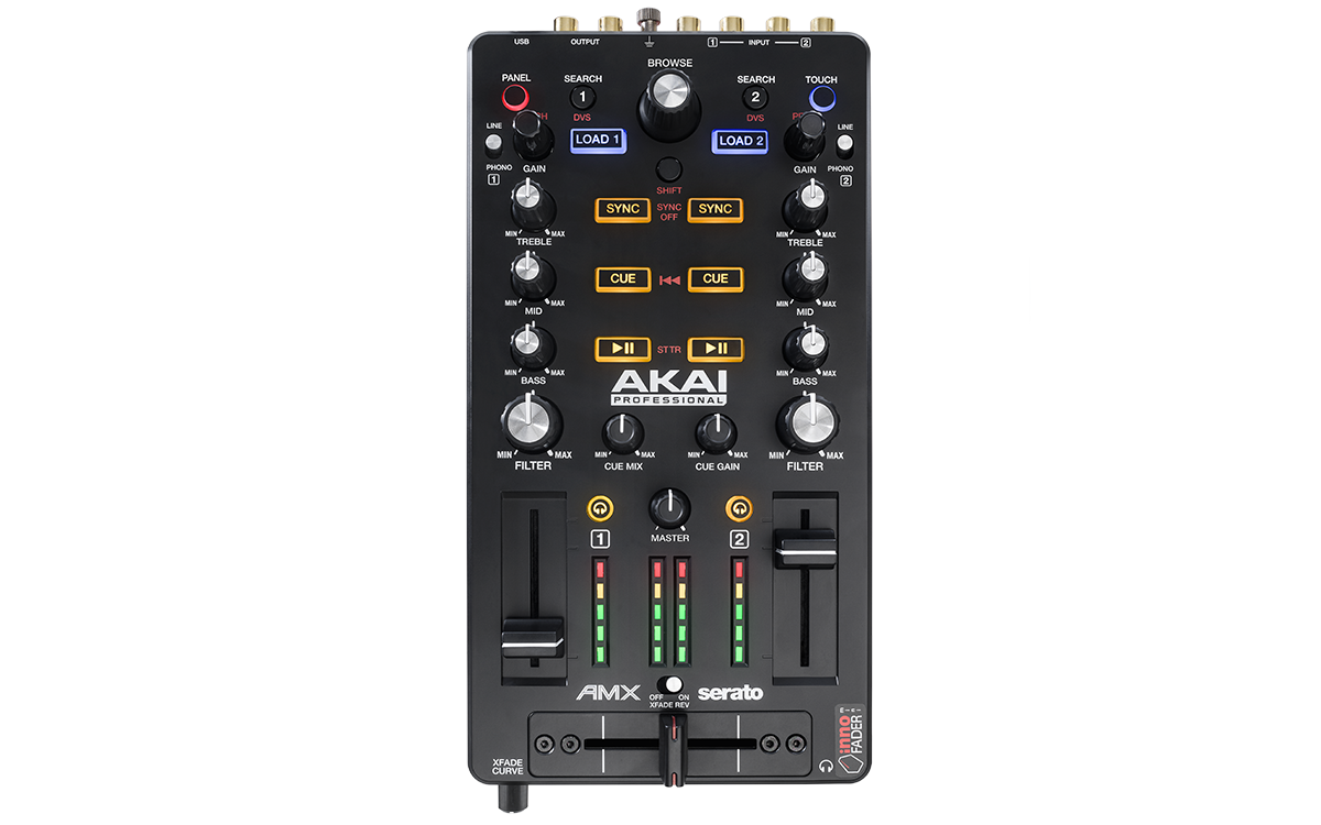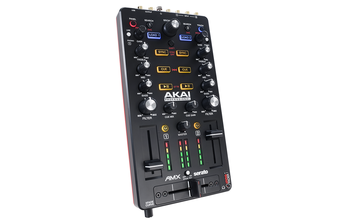 Akai AMX por su parte es un mixer plug and play compatible con Serato DJ, cuenta con una interface de audio de de 24 bits y 96 kHz. Además de ganancia, EQ, knobs para filtros, dos faders y un crossfader mini de Innofader.