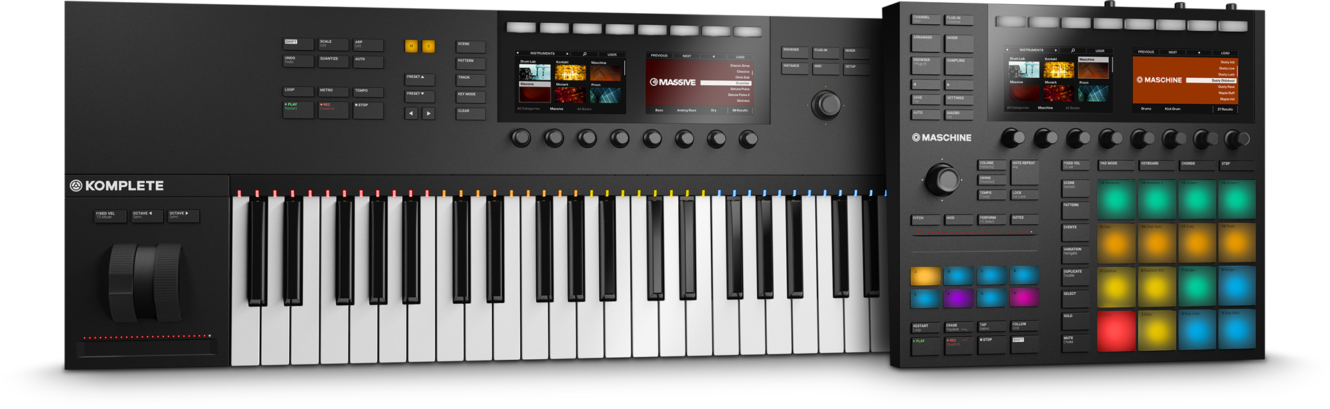 También se ha mejorado la integración con DAW y Maschine, ahora es posible mezclar, navegar y editar proyectos directamente desde el hardware. Los lectores de claves Fatar de calidad profesional y la guía de luz única se caracterizan por nuevas ruedas de tono y modulación, además de una tira táctil horizontal para modificar algunos parámetros.