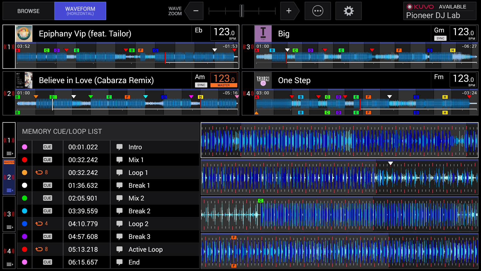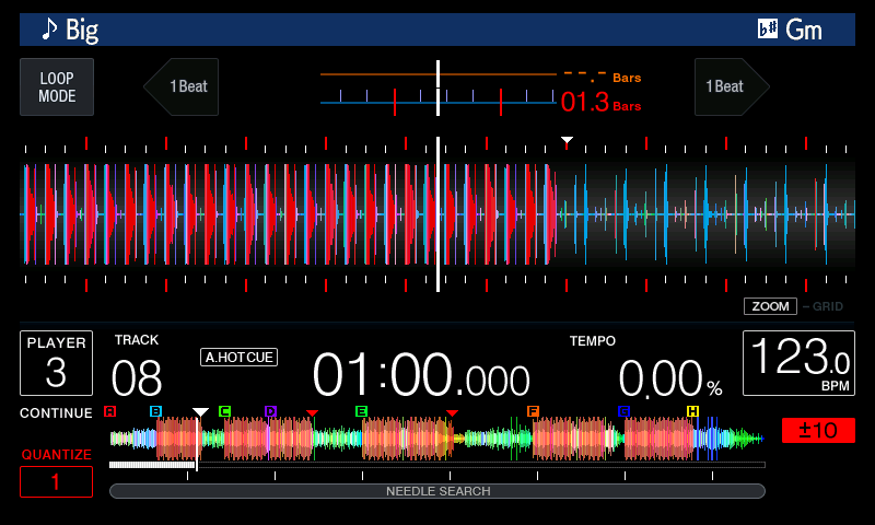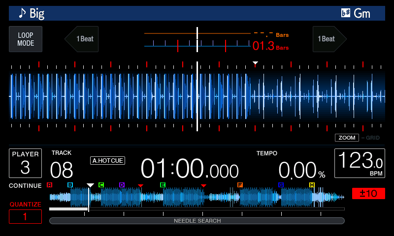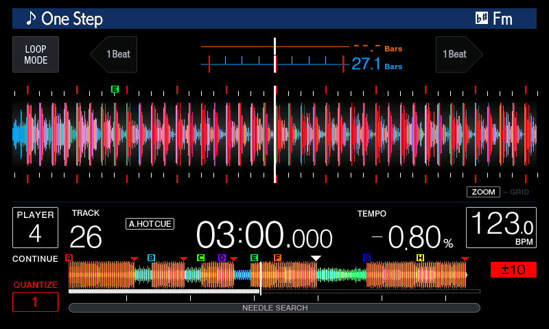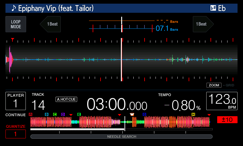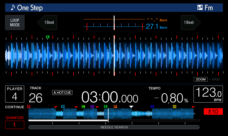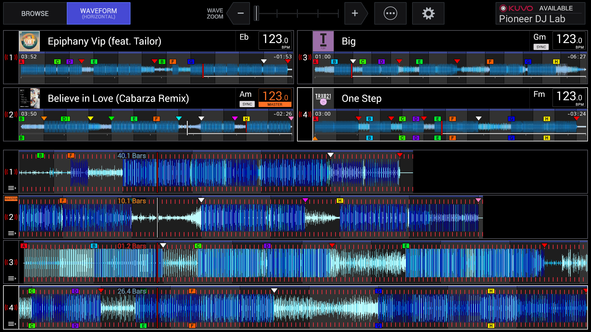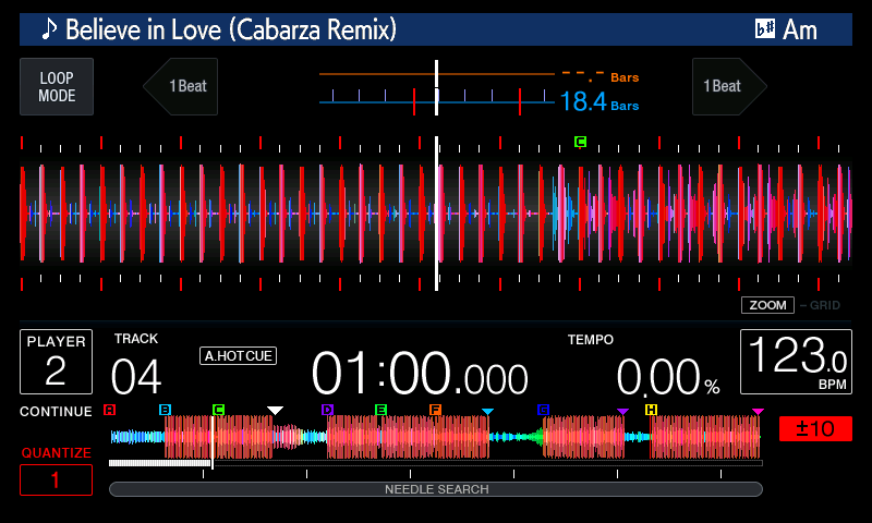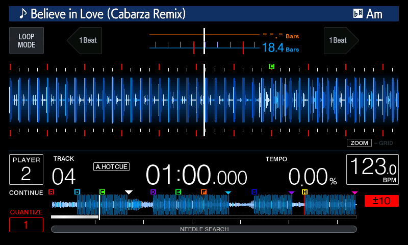- Zoom de Onda Multicolor y vista de onda múltiple: ver una forma de onda a todo color o bien optar por ver las formas de onda de hasta cuatro CDJs al mismo tiempo.