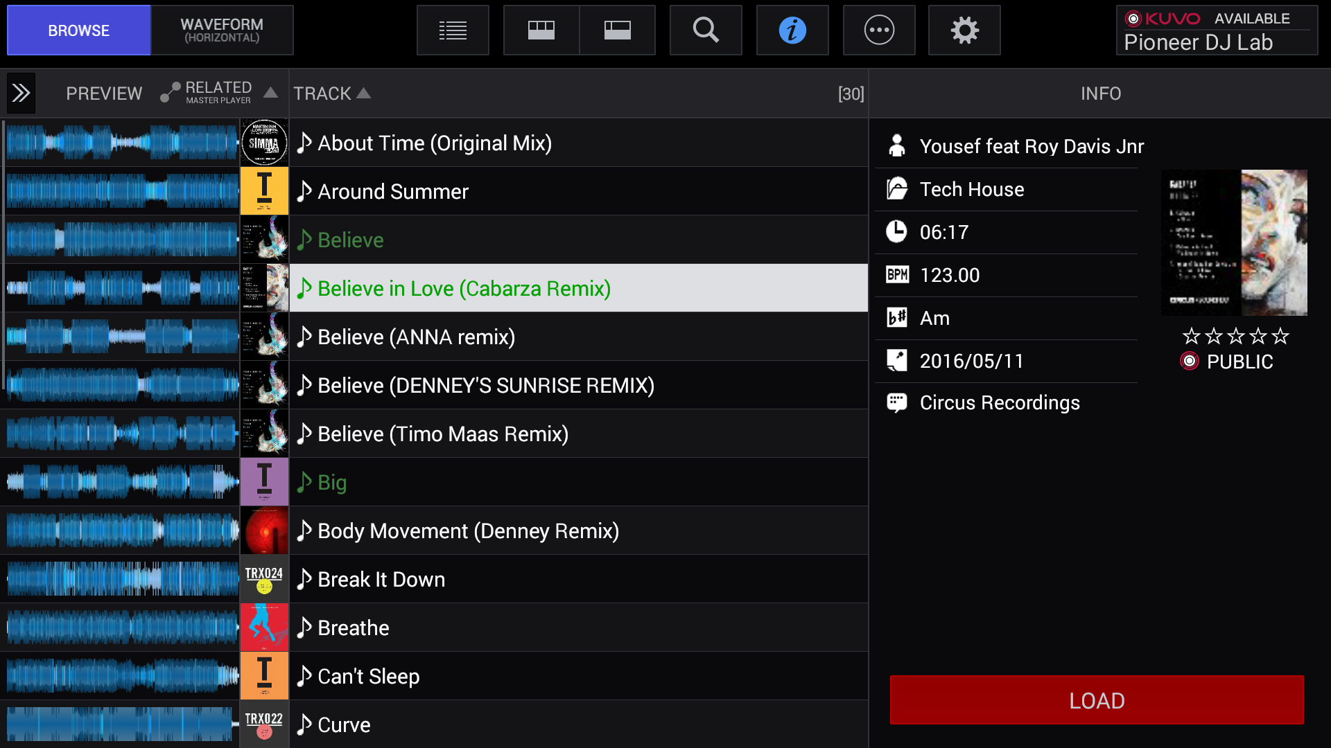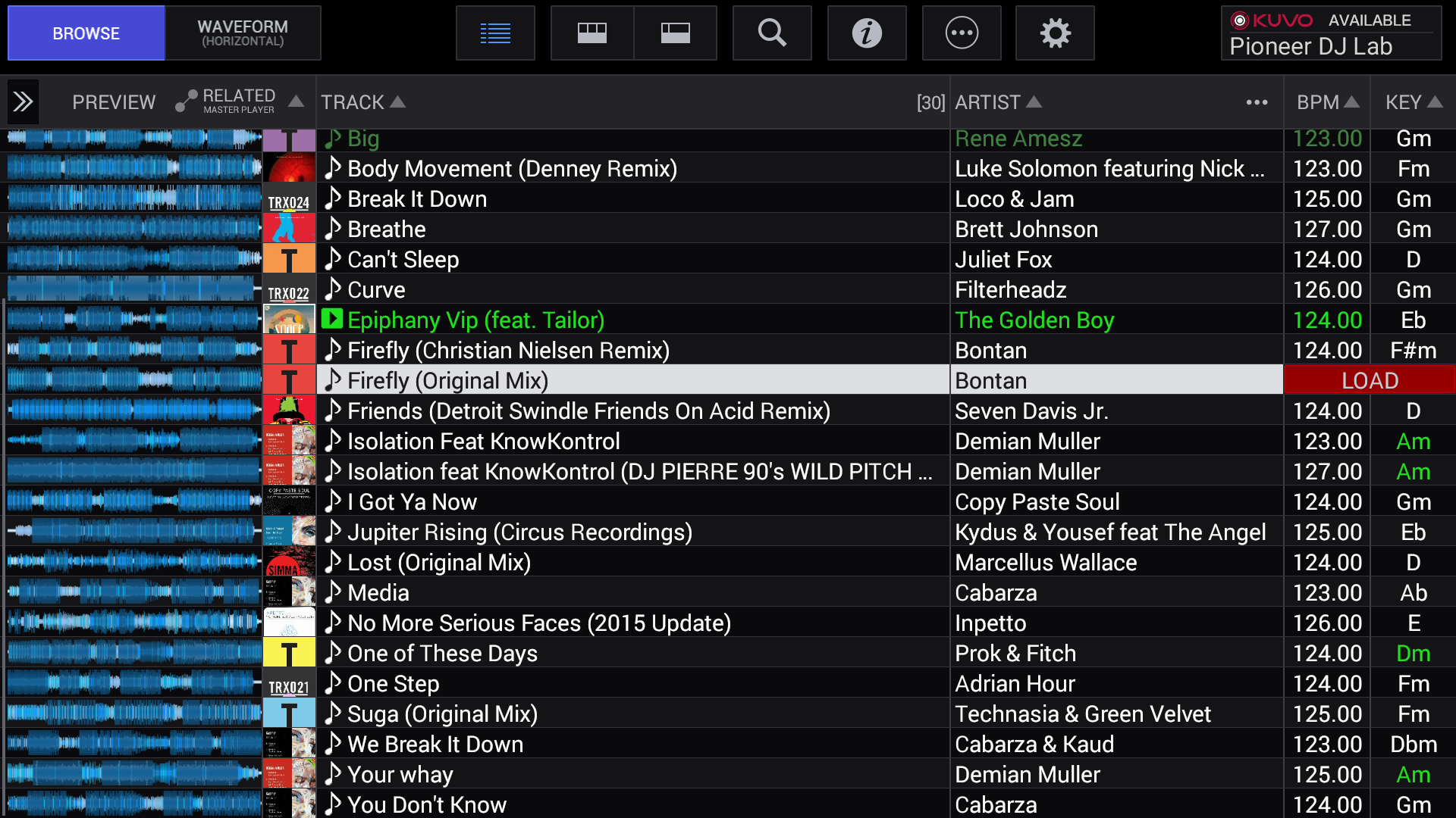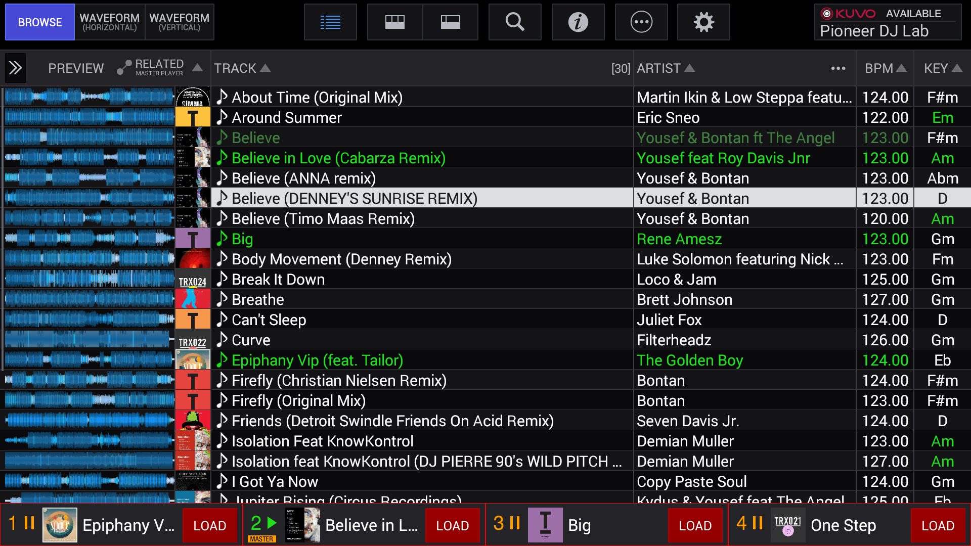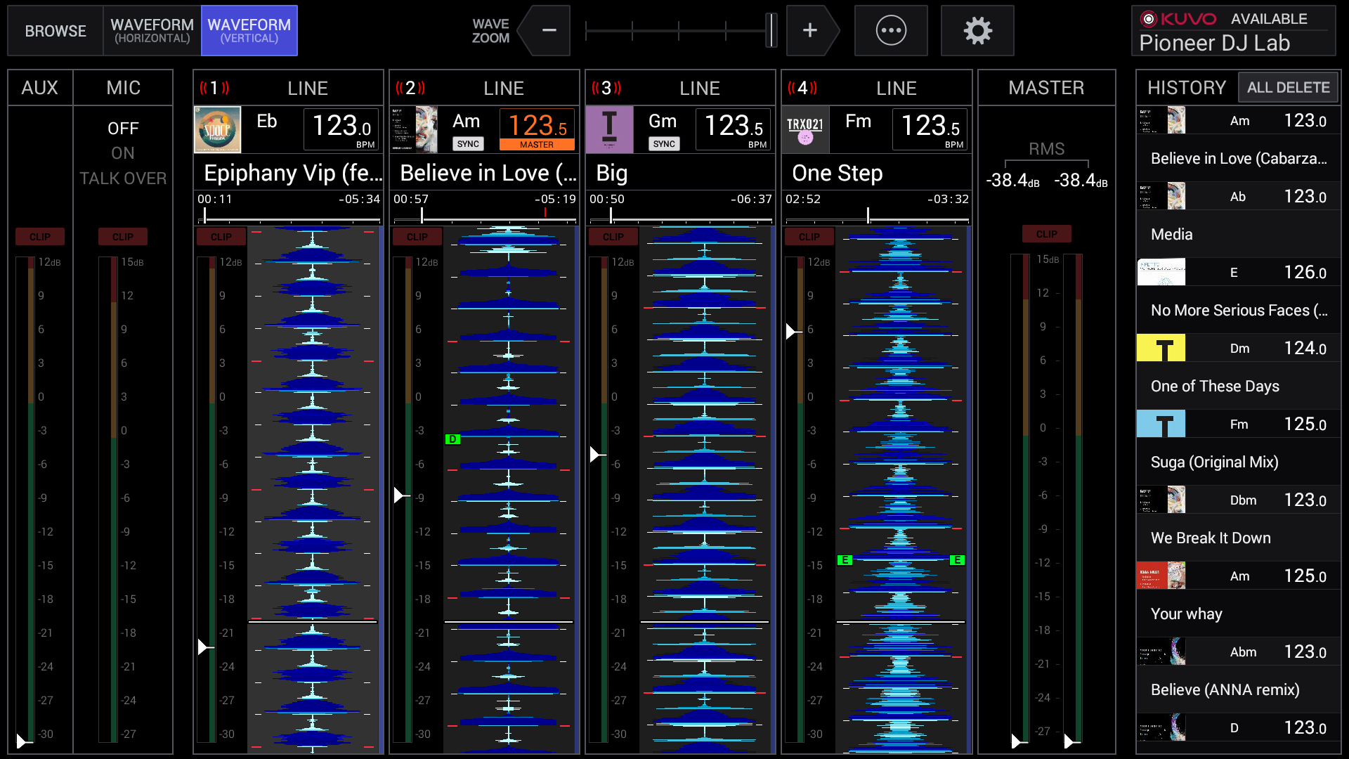 Navega por las listas de reproducción y utiliza la pantalla táctil para seleccionar las pistas para un máximo de cuatro CDJs conectados a través de Pro DJ Link. También se puede elegir entre la vista multionda horizontal o vertical, la visión vertical incluye un medidor RMS para ayudar a supervisar y controlar el volumen de cada canal.