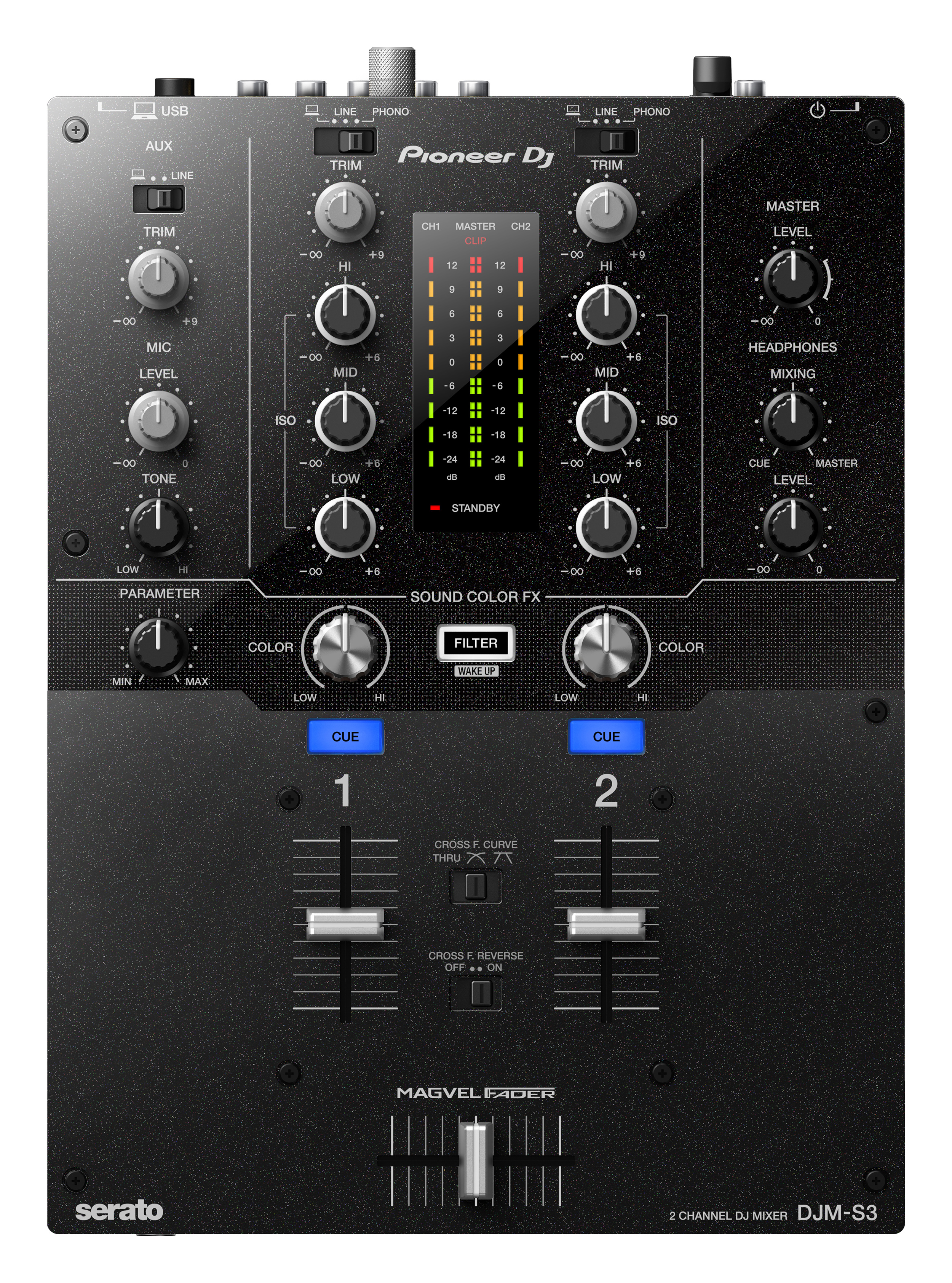 Pioneer DJM-S3 es la nueva mesa de mezclas de 2 canales que ofrece un nuevo punto de entrada a la serie DJM específica para Serato. La DJM-S3 es compatible con Serato DJ y DVS gracias a su tarjeta de sonido incorporada, heredada del modelo profesional Pioneer DJM-S9, para que puedas conectarla a tu PC / Mac y empezar a usarla con Serato DJ nada más sacarla de la caja.