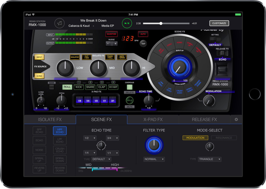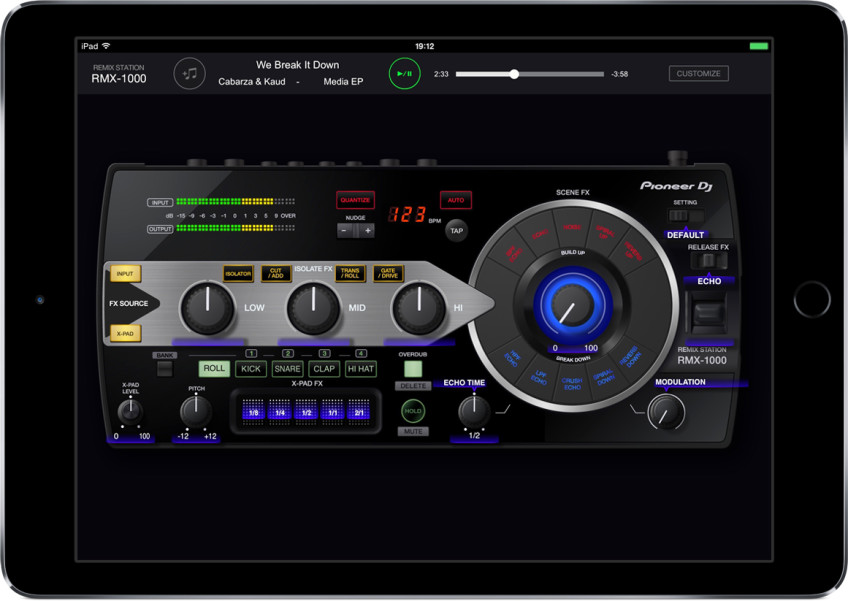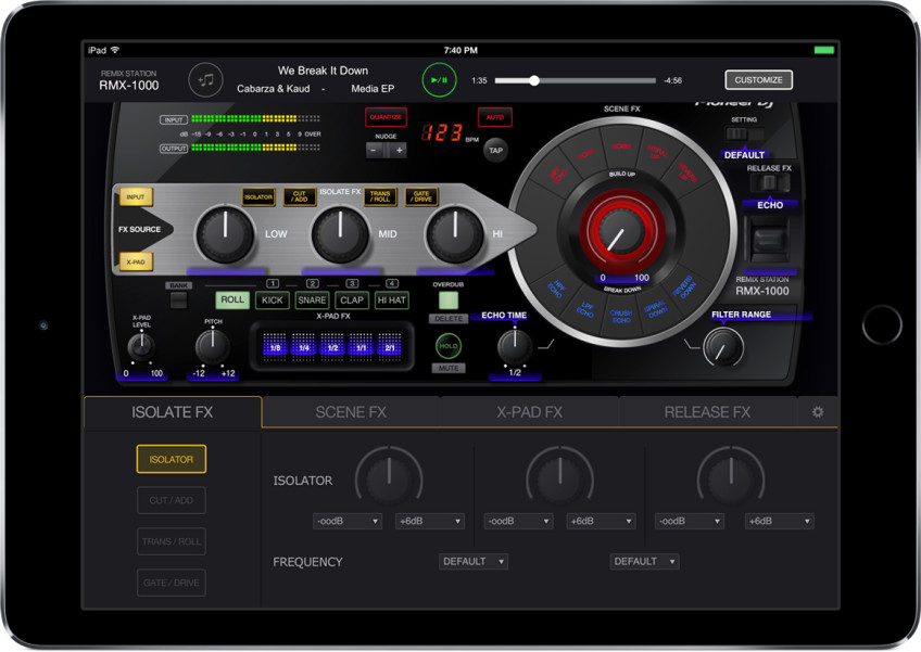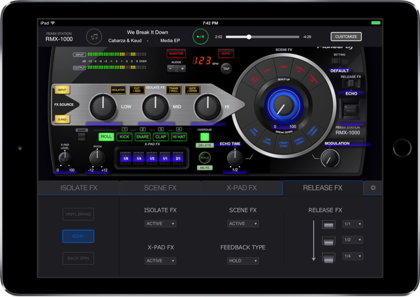 Desde que se comercializó en 2012, el Pioneer RMX-1000 se ha convertido en un módulo de FXs muy popular, utilizado tanto en estudio como en las sesiones en directo. Ahora la app RMX-1000 emula al aparato controlando, gracias a la pantalla táctil, los efectos: Scene FX, Isolator FX, X-PAD FX y Release FX. Igual que con el RMX-1000, la aplicación permite a los productores personalizar los parámetros de los FXs para crear sus propios FXs originales.