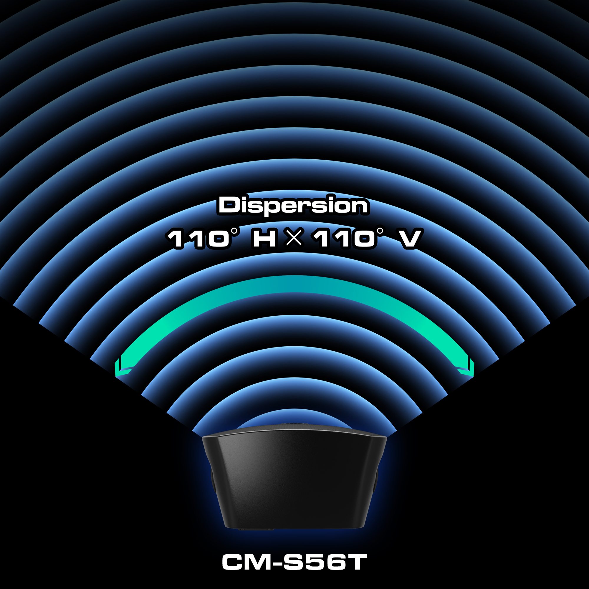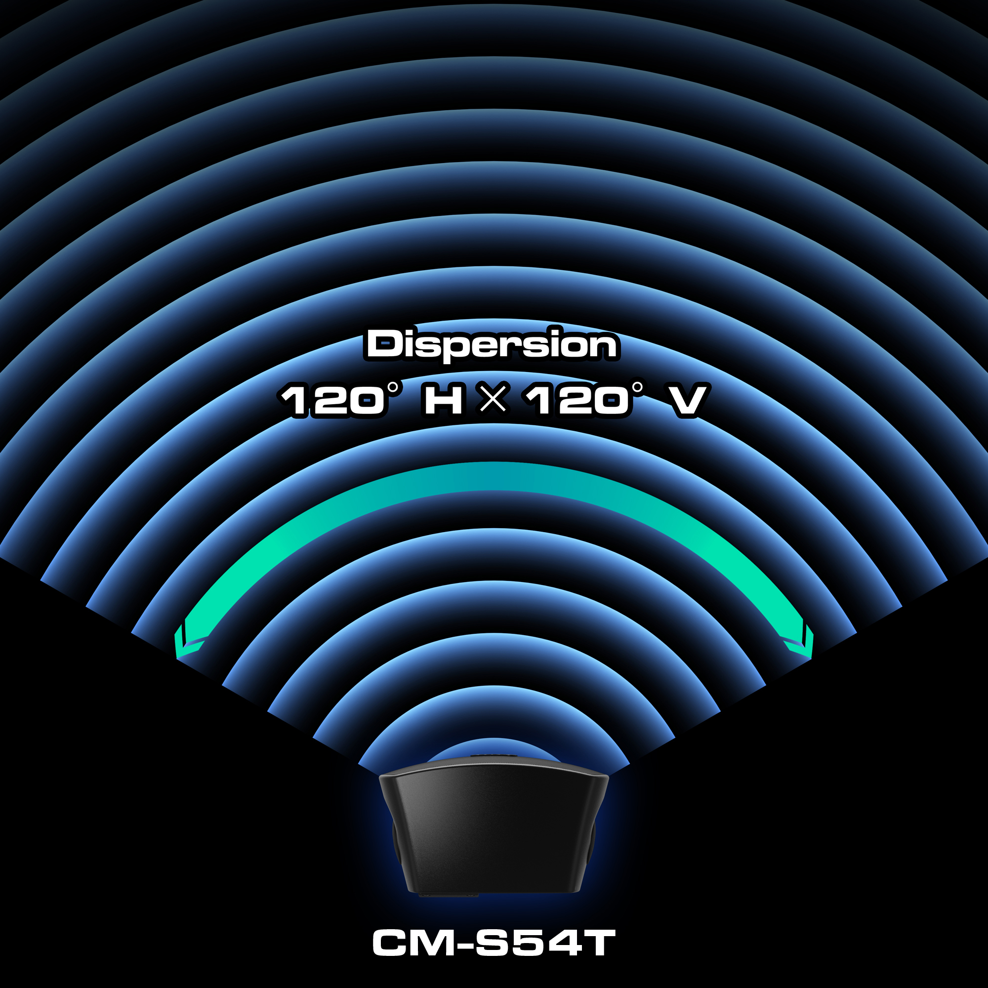 Implementa el menor número de cajas con la dispersión cónica disponible en toda la gama. El CM-S54T se dispersa a 120×120°, el CM-S56T se dispersa a 110×110° y el CM-S58T se dispersa a 100×100°.