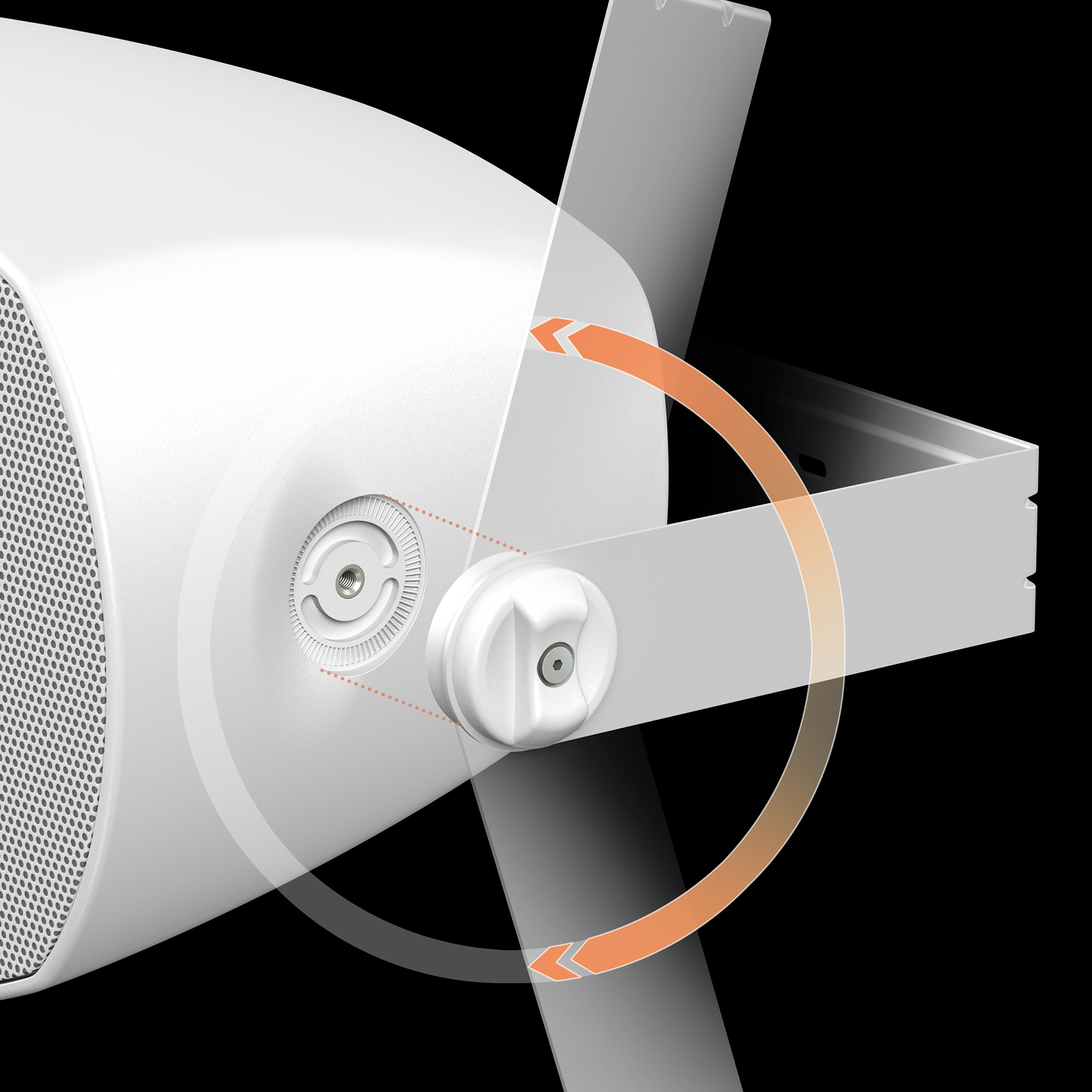 Las ranuras rígidas dentro del soporte en U facilitan el ajuste de la dirección del sonido. Fija la directividad de forma manual y para mayor seguridad, fíjala con una llave Allen o un destornillador. Si necesitas una instalación alternativa, puedes usar los orificios de 60 mm en la parte posterior de los altavoces para colocarlos en espacios más arriesgados.