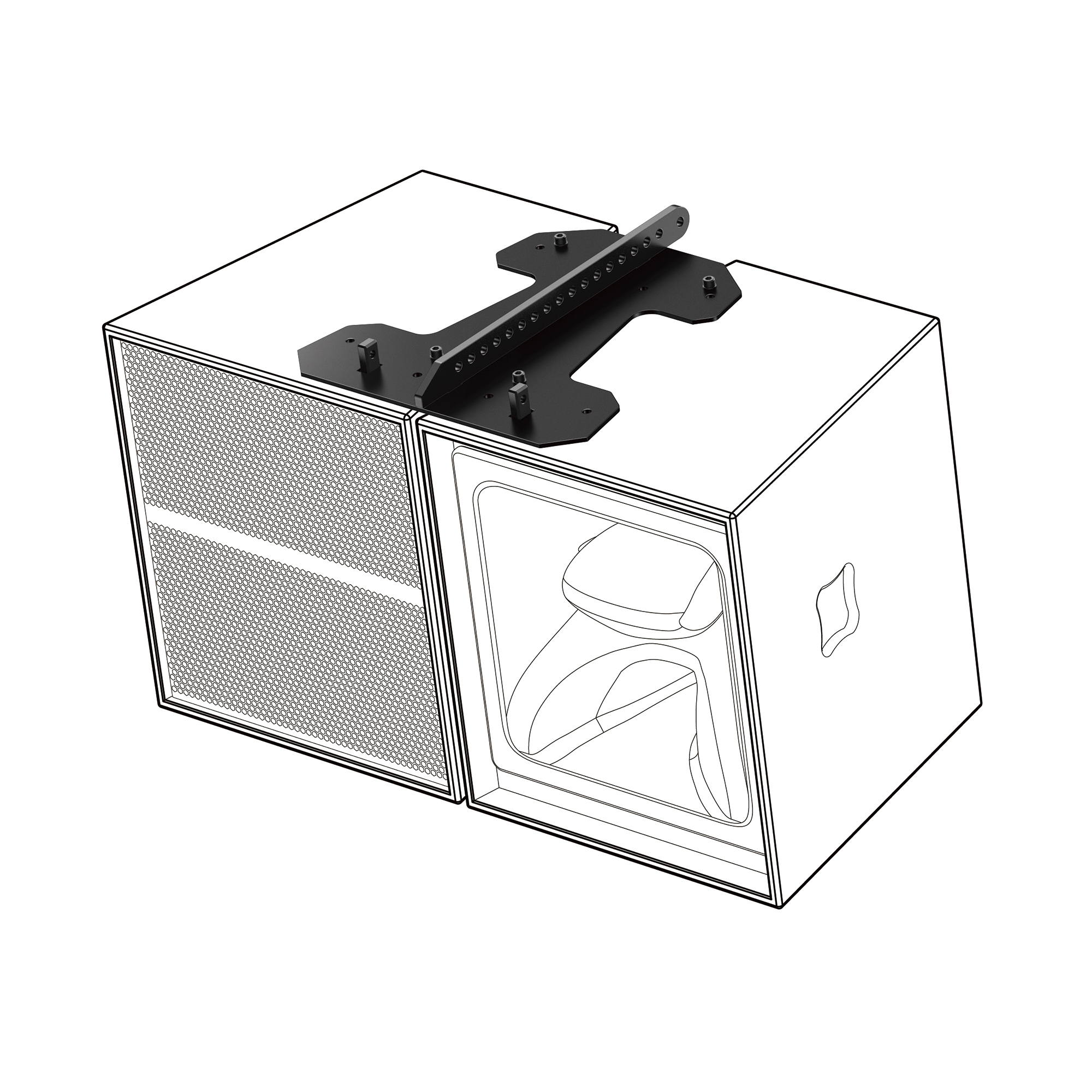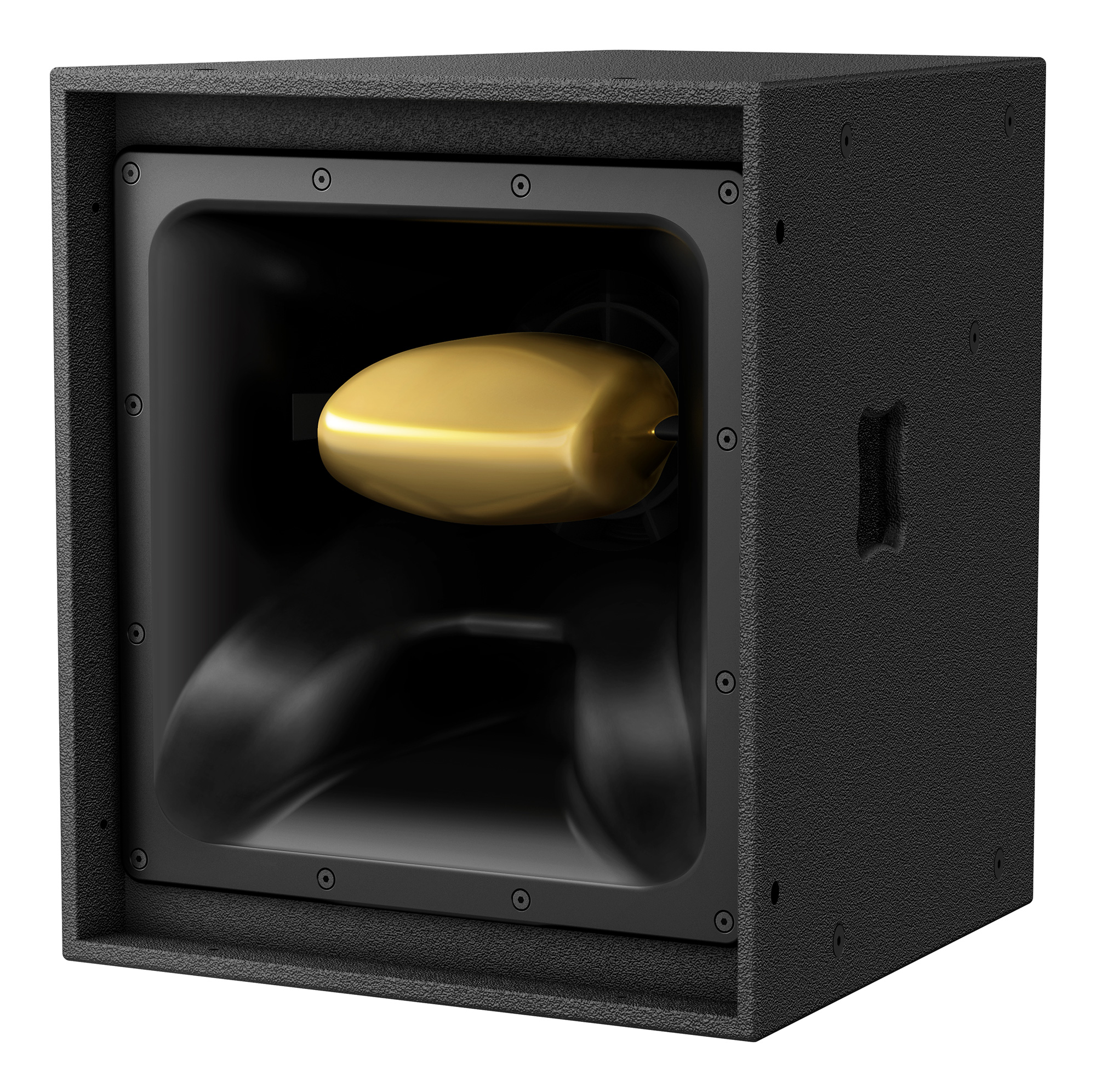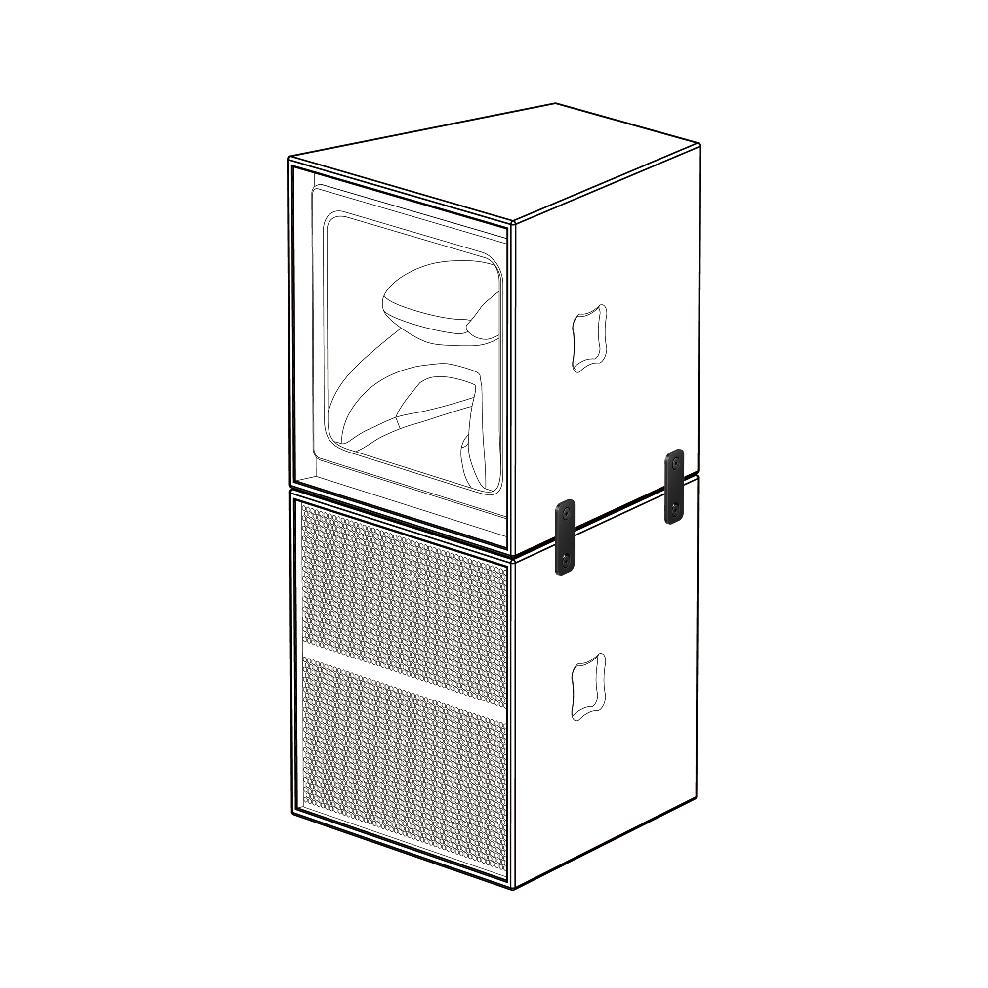 El altavoz de medios de 8 pulgadas y el altavoz de compresión de 1 pulgada se sitúan en la guía de ondas integrada, con sus localizaciones perfectamente alineadas para minimizar la diferencia de distancia física y reducir la cancelación de la frecuencia de cruce. Este diseño único de doble bocina combina frecuencias medias y altas en una posición profunda dentro de la guía de ondas, mejorando la mezcla de los sonidos en comparación con el rendimiento de una estructura de bocina convencional. La forma curvada de la guía de ondas controla perfectamente la dispersión a 50 grados en horizontal y 35 grados en vertical, proporcionando un sonido natural con alto SPL en el área objetivo mientras reduce la presión acústica fuera de esa zona.