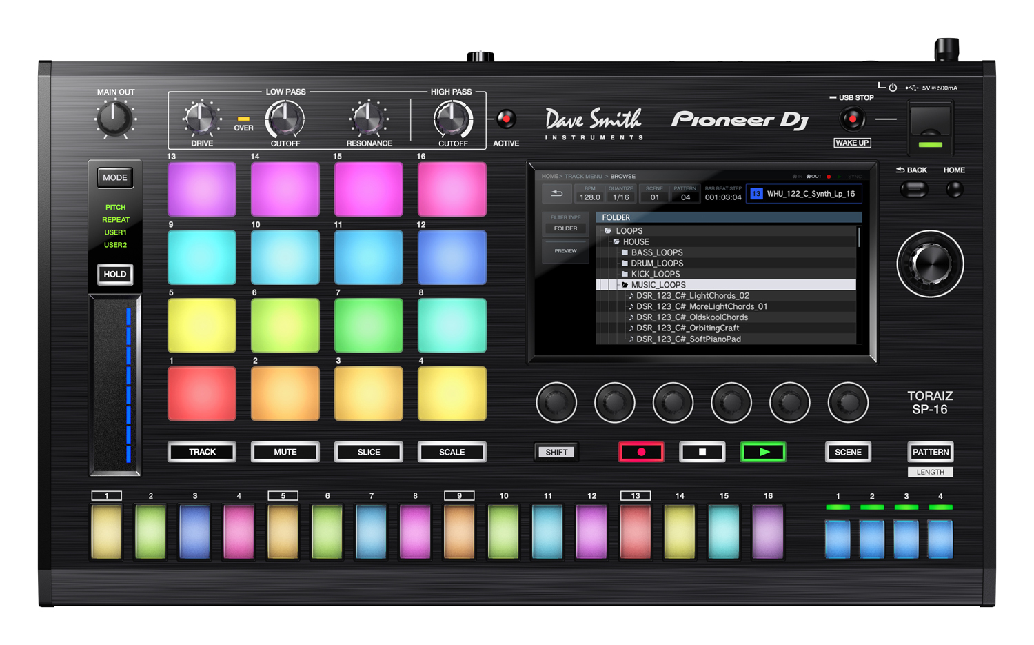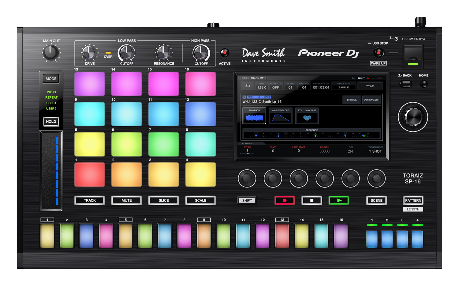 Pioneer ha colaborado con Dave Smith para añadir al TORAIZ SP-16 los filtros analógicos de su icónico sintetizador Prophet-6. Utiliza los tres botones para esculpir tu sonido, manipula parámetros como Drive, Cut Off y Resonance y añádele una calidez analógica real.