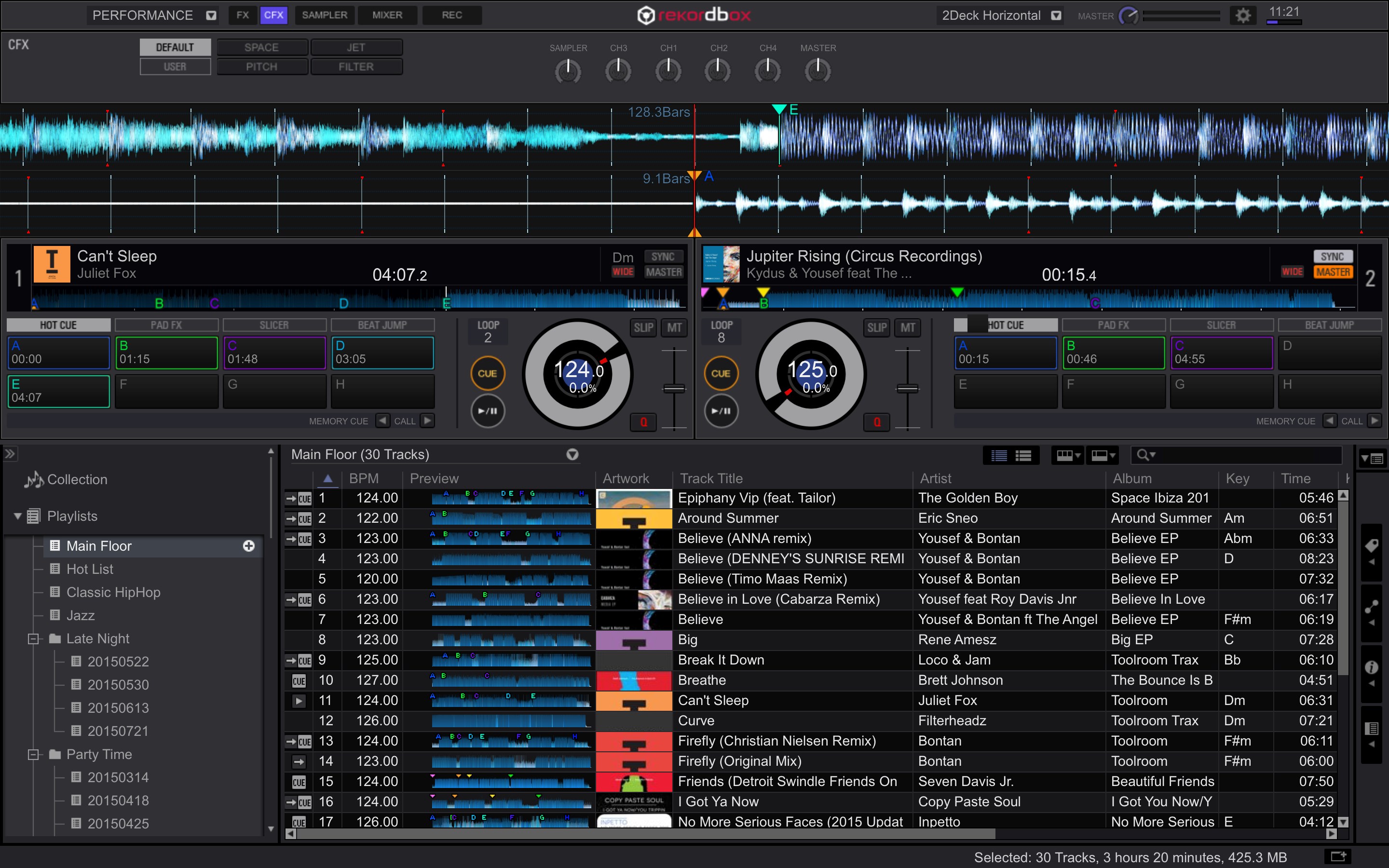 • La GUI es un reflejo de los aparatos de Pioneer para actuaciones intuitivas: La interfaz (GUI) del Rekordbox DJ es un fiel reflejo del diseño de los aparatos, incluyendo los nuevos controladores, el Pioneer DDJ-RX y el Pioneer DDJ-RZ , para ofrecer a los DJs, la forma más intuitiva y sencilla de realizar sus actuaciones. Los FX, el dibujo de onda, los reproductores, el sampler y el navegador reflejan exactamente el hardware, y los DJs pueden elegir entre una vista horizontal o vertical con 2 ó 4 decks para adaptarse a sus preferencias.