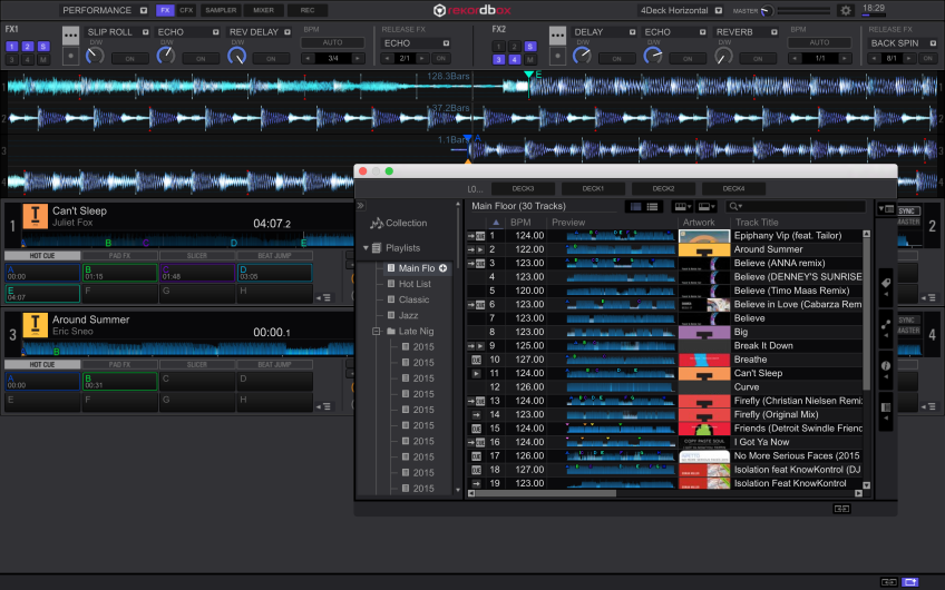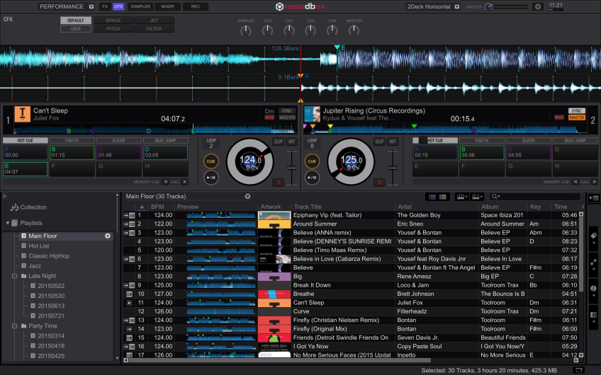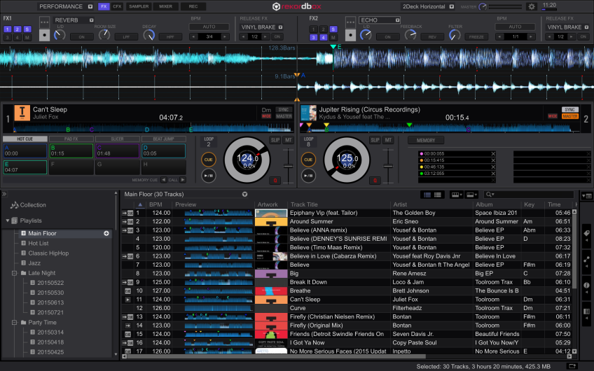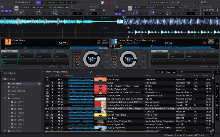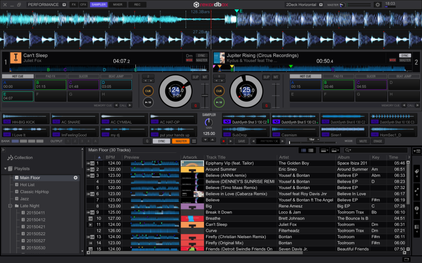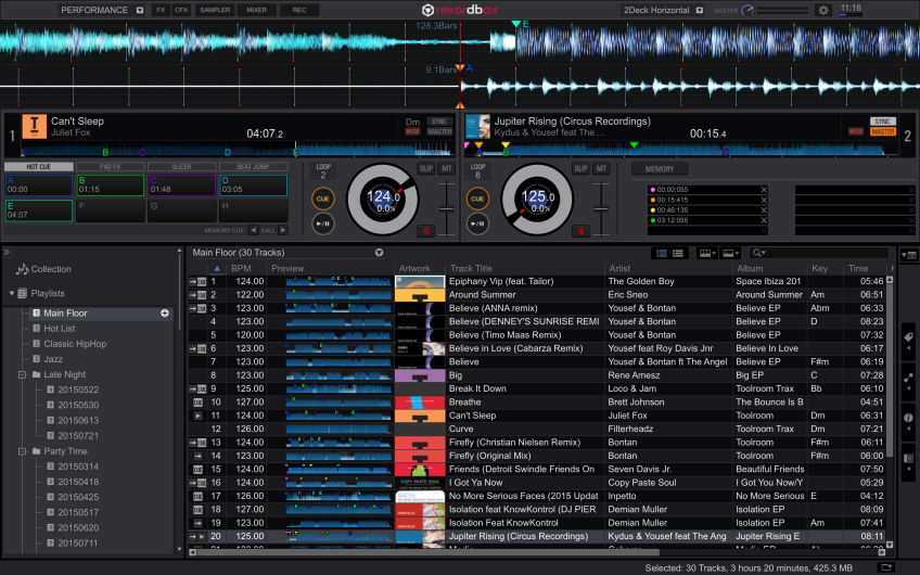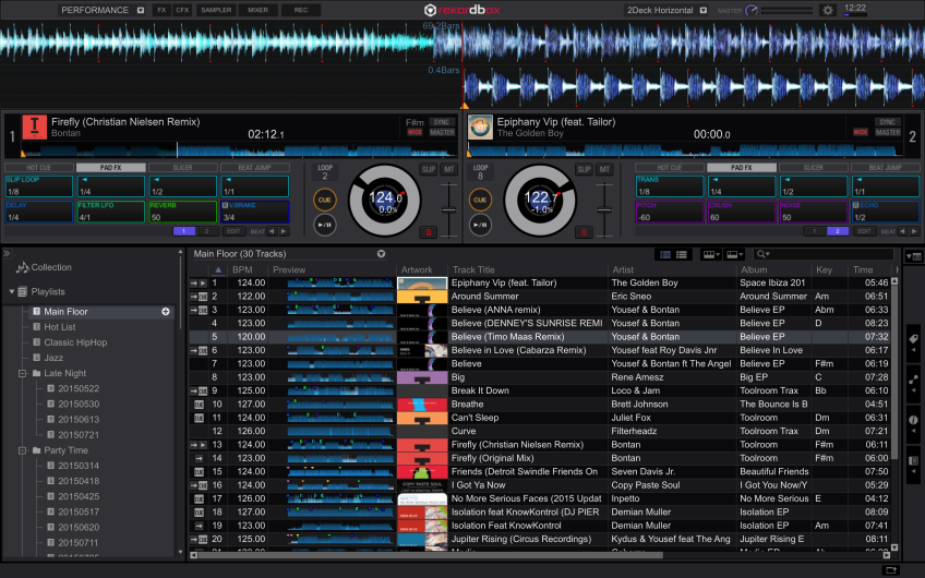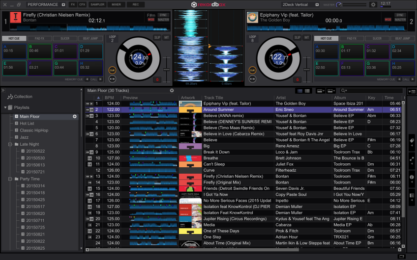 Lanzado el pasado mes de Octubre, Rekordbox DJ es un Pack Plus que los DJs pueden comprar desde el software de gestión de música Rekordbox 4.0. Desbloqueando así las características para directo de Rekordbox DJ, lo que significa que es posible preparar todo tu set en Rekordbox como siempre – añadiendo cues, loops y etiquetas – a continuación, sólo tienes que conectar tu ordenador portátil a un controlador y pinchar. No necesitas transferir tu biblioteca a otro programa y también puedes usar esa misma biblioteca para pinchar con CDJs o XDJs.
