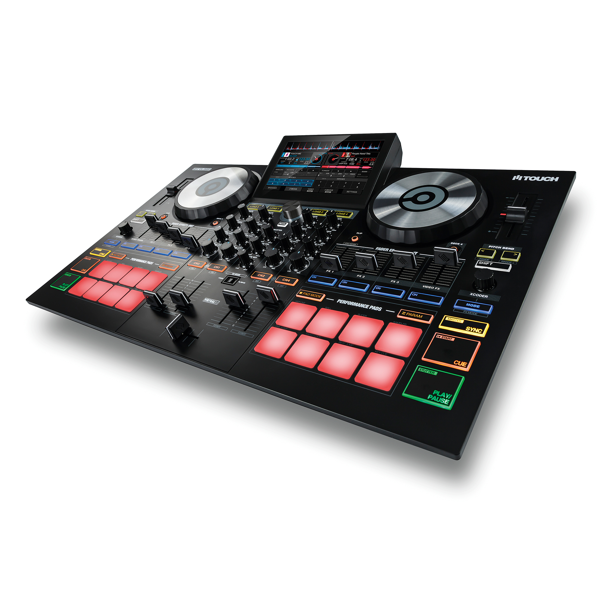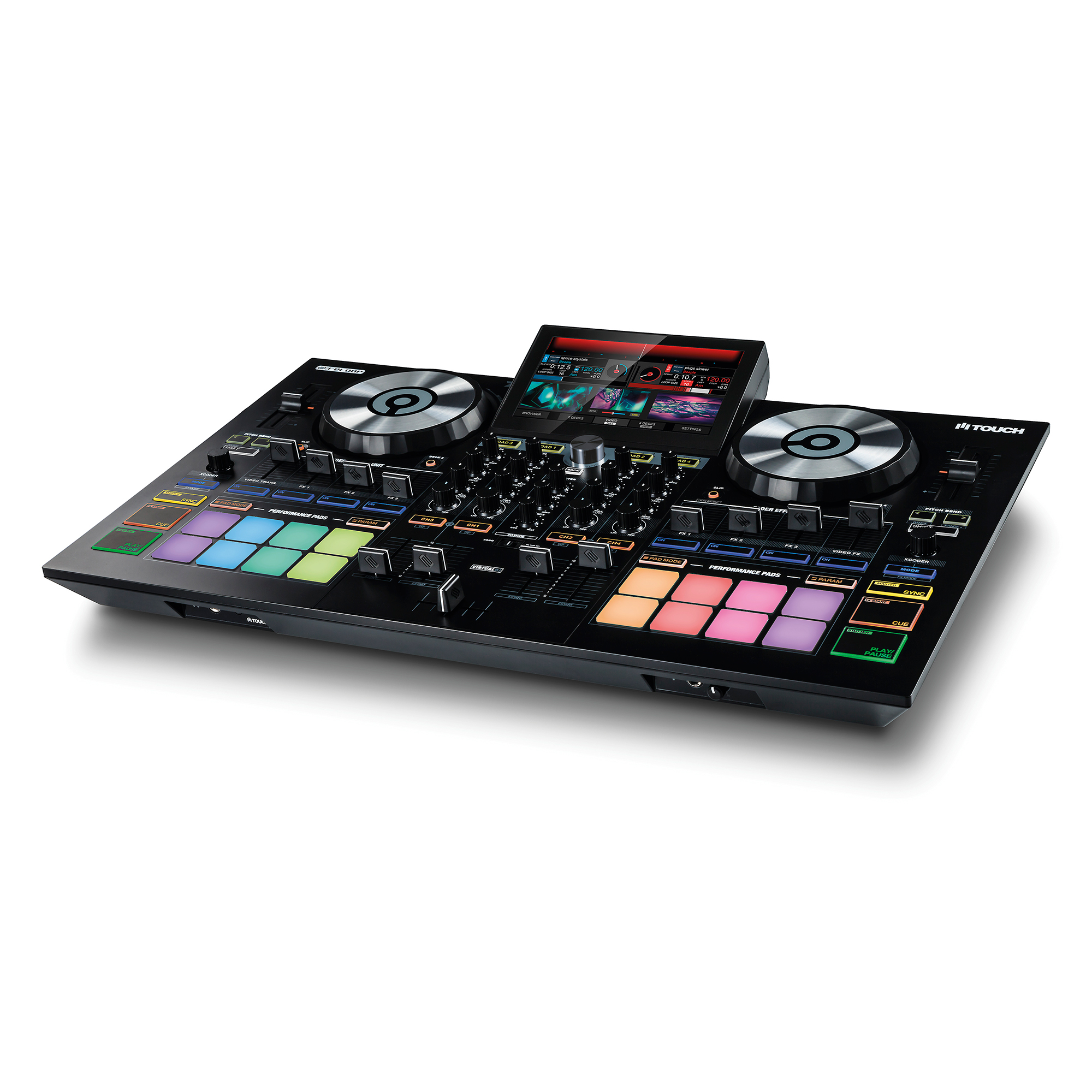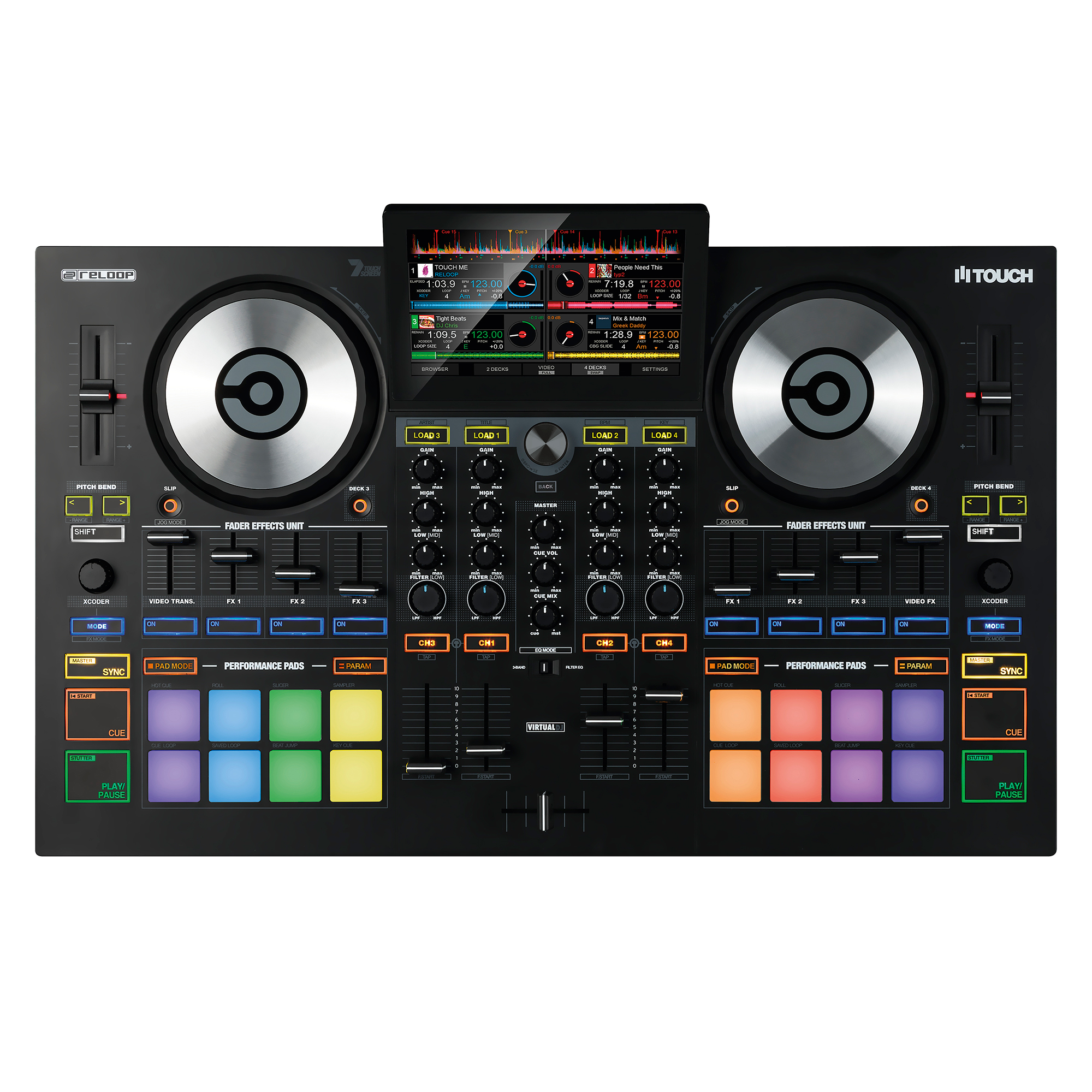 Reloop Touch es el primer controlador del fabricante germano Reloop que incorpora pantalla táctil a todo color de 7 pulgadas. Touch ha sido desarrollado conjuntamente con Virtual DJ para ofrecer una gran combinación de comodidad y versatilidad que hacen que tanto el software como el hardware se integren de manera magistral.