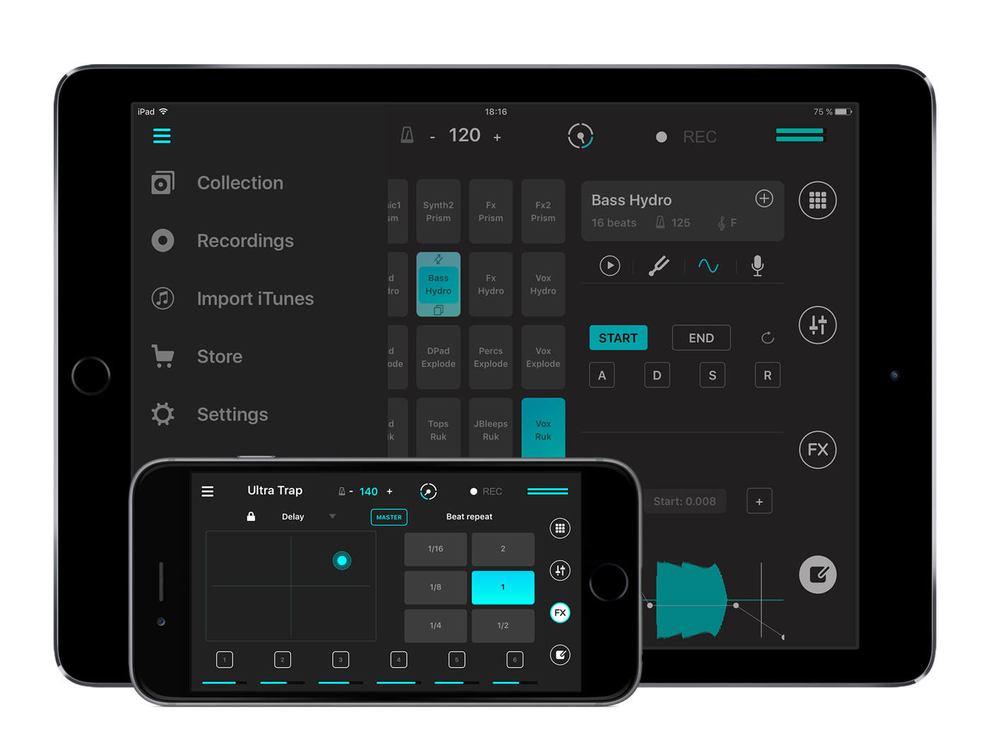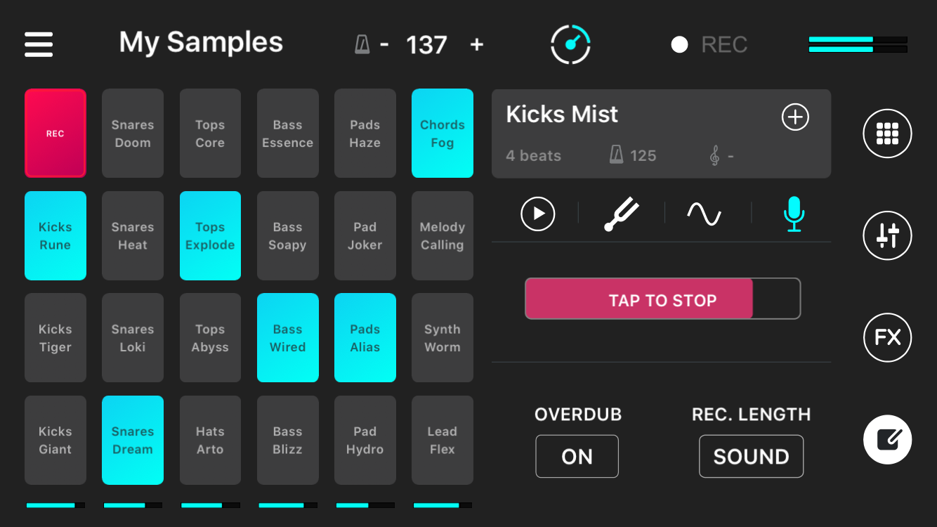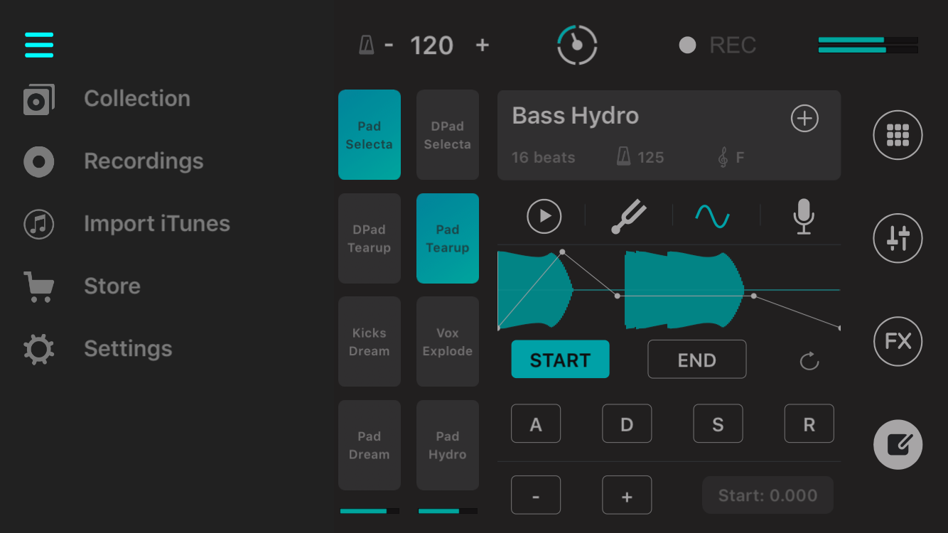 • Cuadrícula de 24 pads en el iPhone y 48 en el iPad.