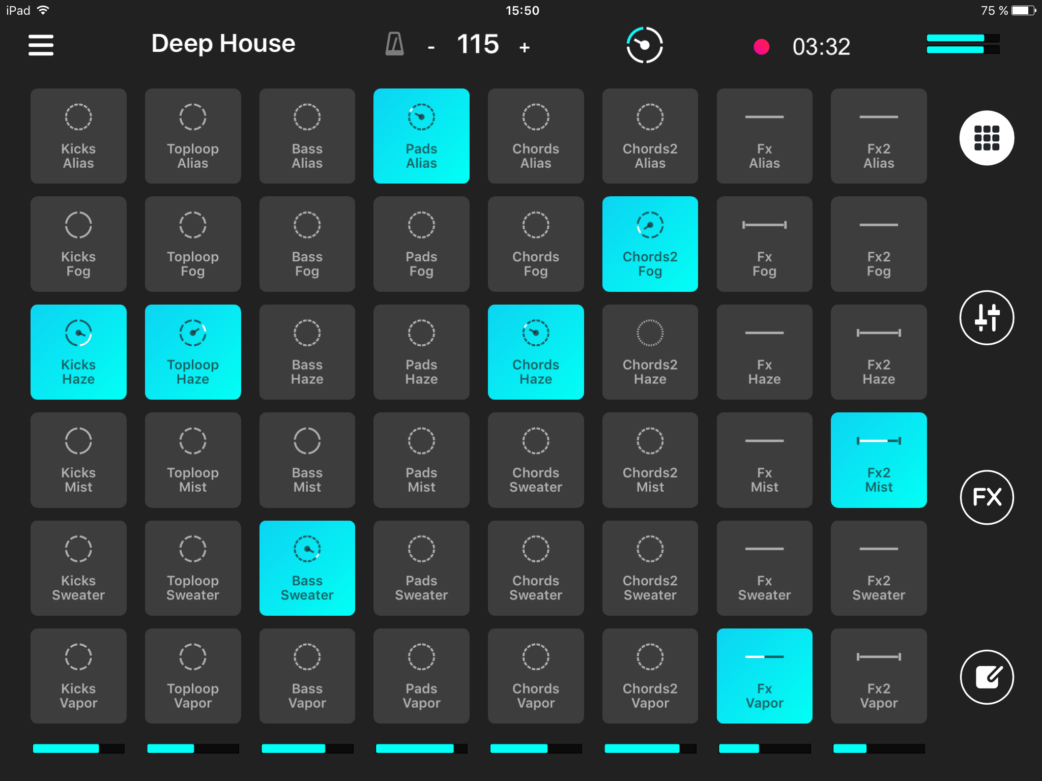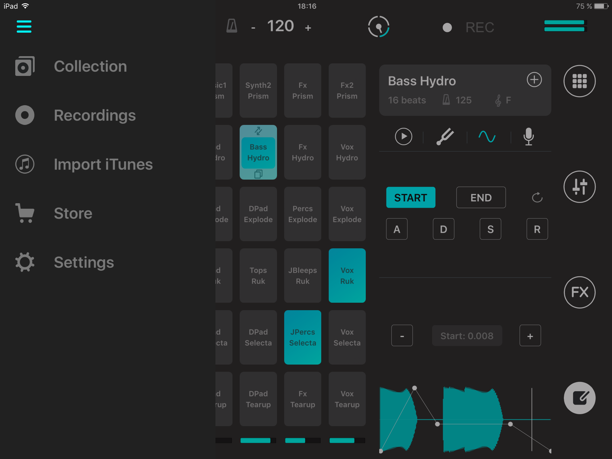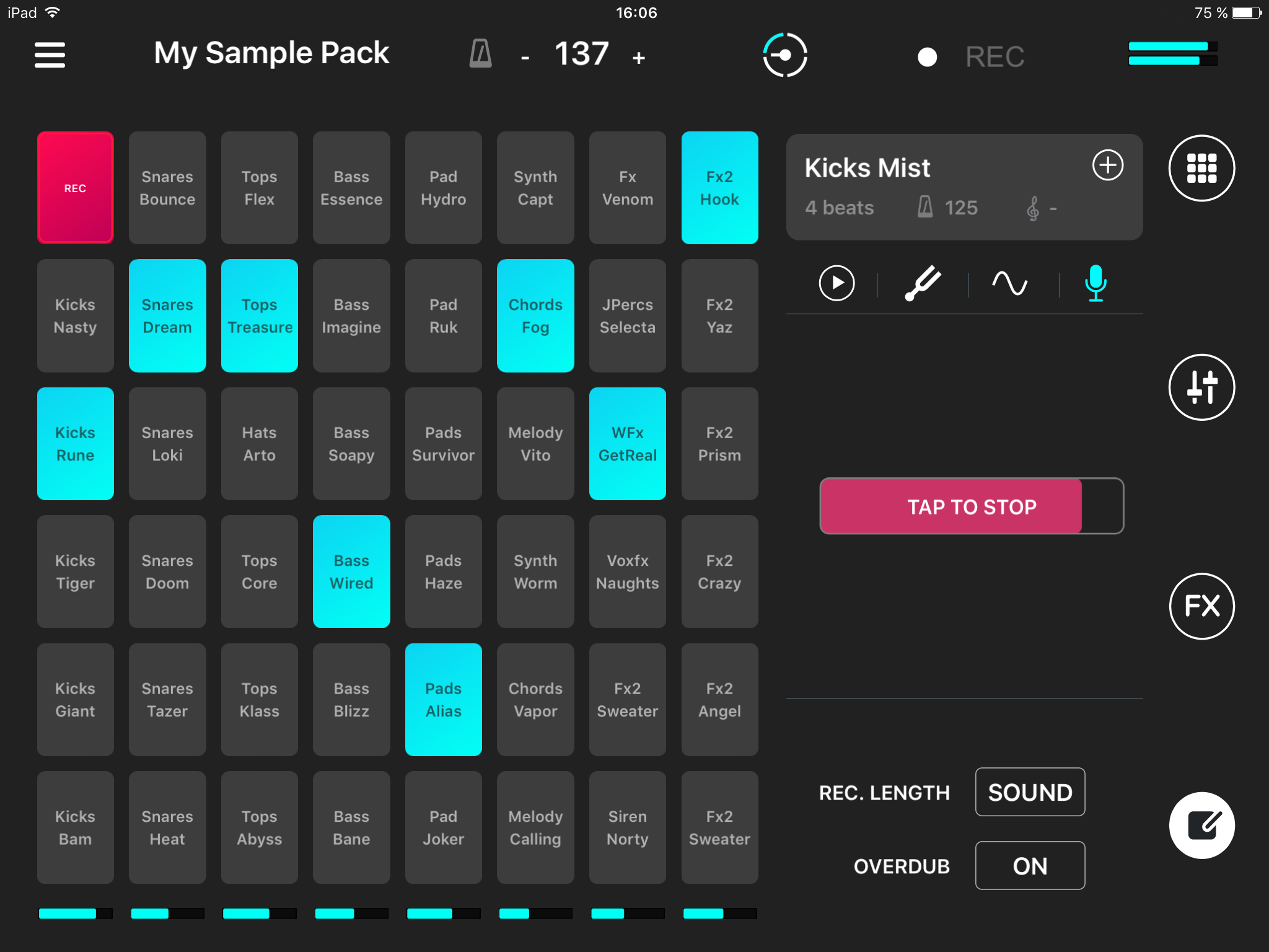 • Cuadrícula de 24 pads en el iPhone y 48 en el iPad.