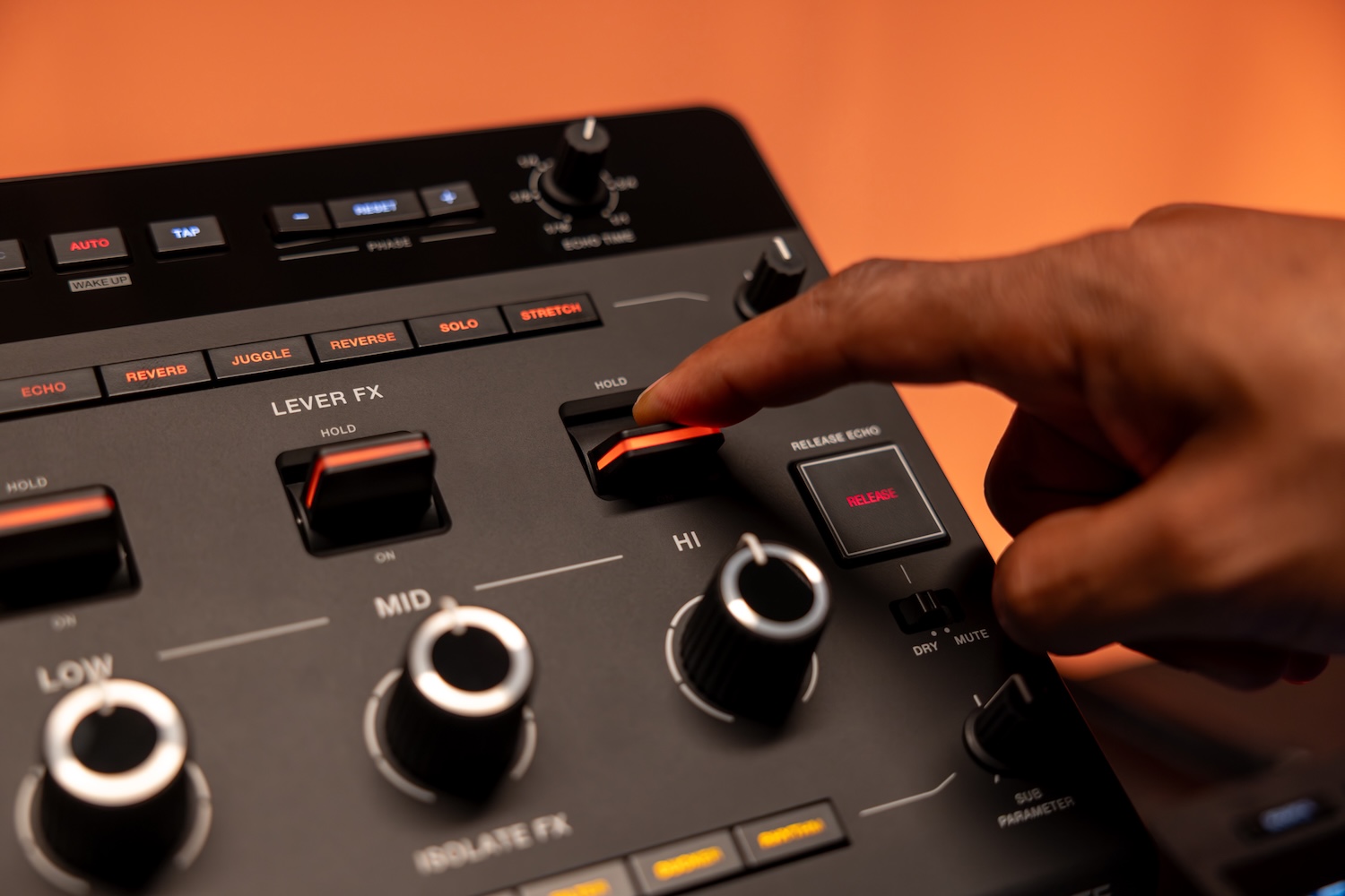 - Isolate FX: 3 grandes mandos permiten un control suave y dinámico. Los efectos disponibles incluyen Tape Echo, Reverb, Drive, Filter, Ducker y Rhythm