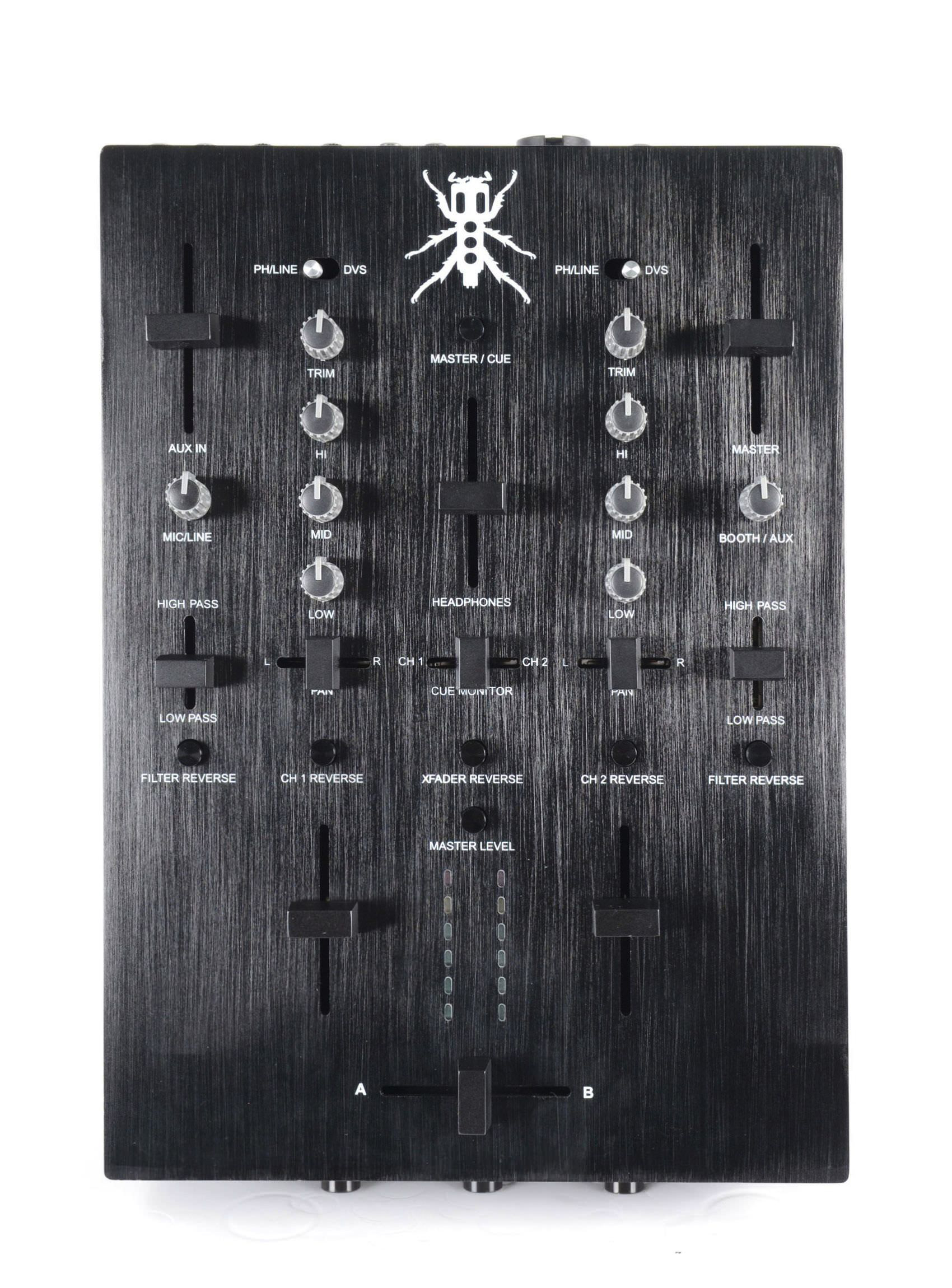 - Mezclador para DJ de scratch con 2 canales de alto rendimiento.