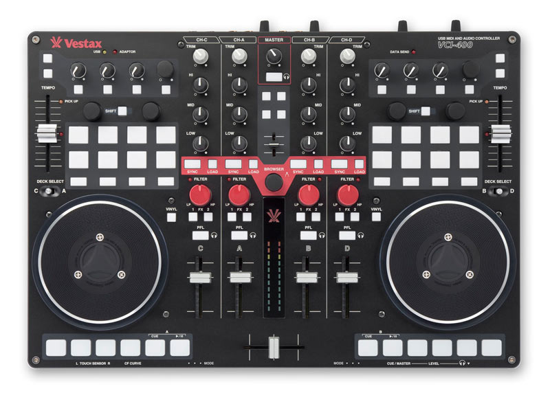 Vestax ha presentado hoy su nuevo controlador, el VCI-400. Aquí te dejo el video presentación del producto, en él se puede ver que el aparatito tiene muy buena pinta. A primera vista se puede observar que el tamaño del knob del filtro, por ejemplo, es muy grande comparado con los demás knobs del VCI 400, un punto a su favor para jugar con este efecto tan goloso. Por otro lado, parece que el tamaño de la unidad no es muy grande, pero es cuestión de tocarlo y verlo en directo. Lo que sí es cierto, es que puede ser otro serio rival de los Traktors, los Pioneers, los Allen & Heaths y los Denons que ya pululan por el mercado.