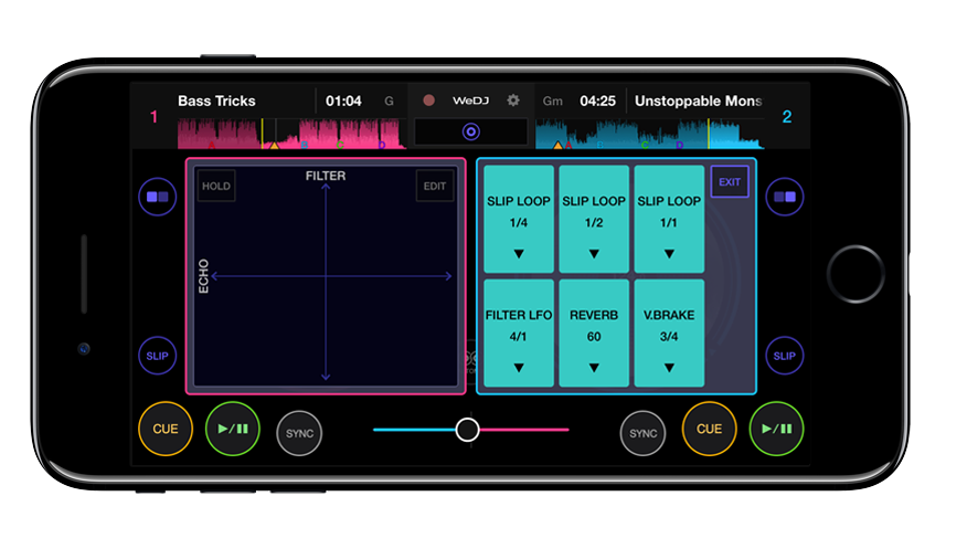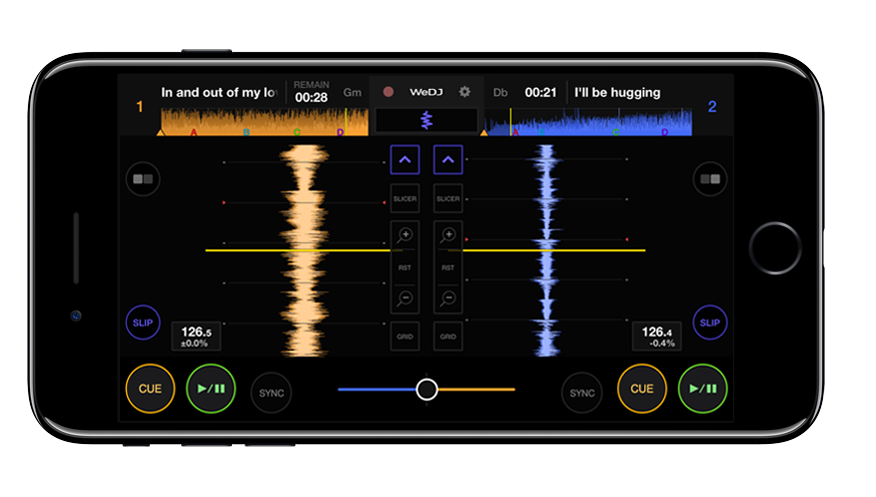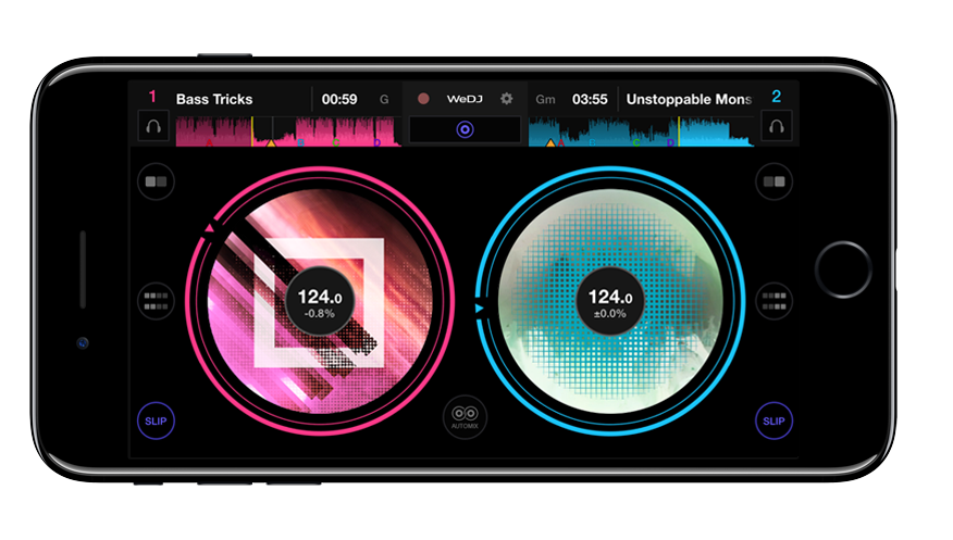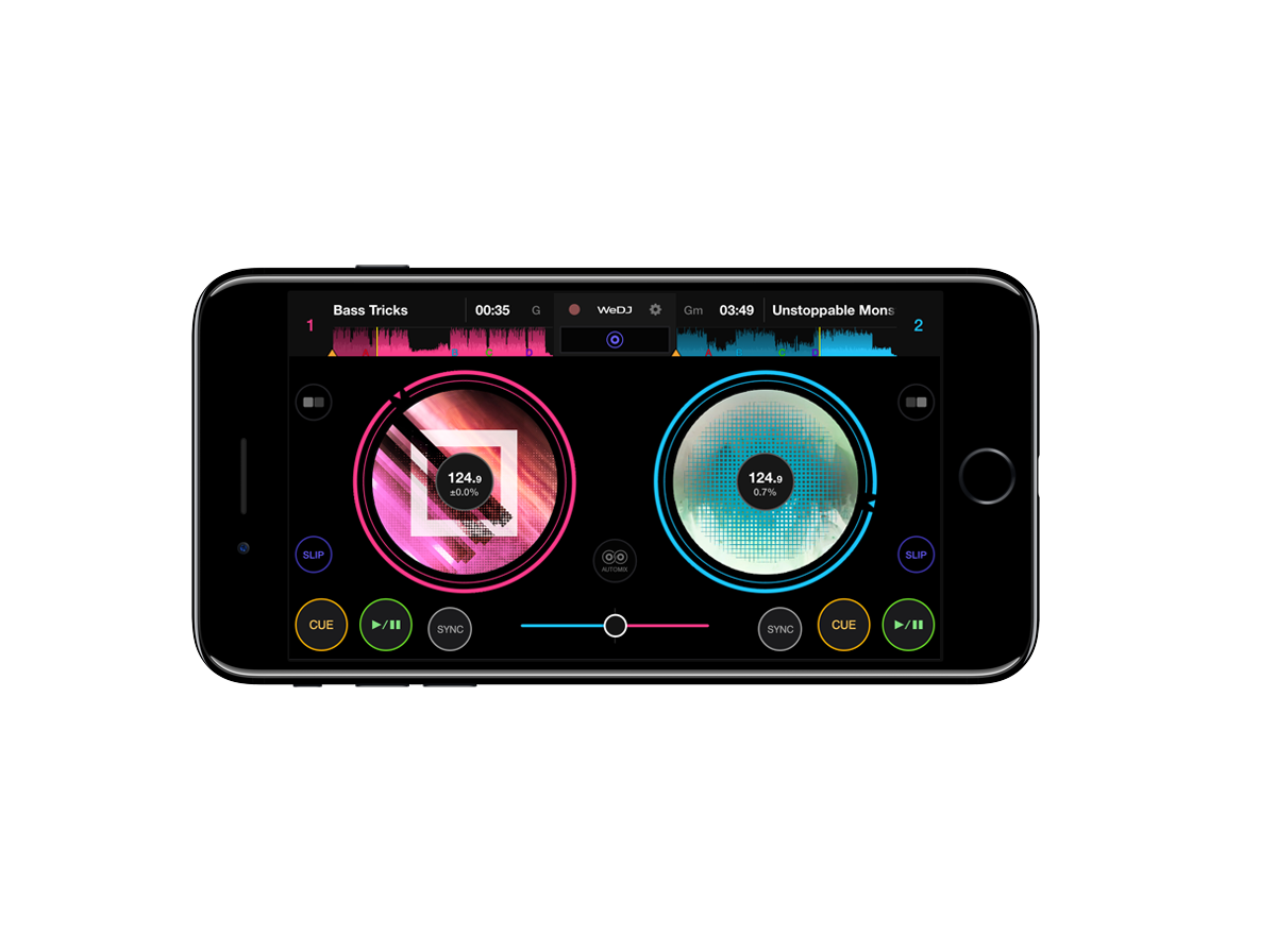WeDJ para iPhone tiene las mismas características que la versión de la app para iPad. La colorida interfaz animada muestra toda la información y los controles que necesitas para realizar mezclas sin interrupción. Además, los colores de las formas de onda y los jog wheels cambian según el color de la imagen de la portada del disco, para que puedas realizar un seguimiento de lo que hay en cada plato. Puedes utilizar el botón Sync para sincronizar tus pistas en el momento perfecto y Auto Gain para ajustar automáticamente el volumen a un nivel adecuado, por lo que podrás utilizar funciones para directo incluyendo Hot Cues, loops, FX Pad y FX Combo para hacer tus mezclas únicas. El diseño de la aplicación está optimizado para la pantalla del iPhone y del iPad y puedes conectar el controlador Pioneer DDJ-WeGO4 o Pioneer DDJ-WeGO3 para obtener control táctil de todas las funciones de WeDJ.